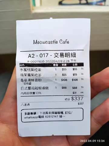 我同大小姐都系爱猫之人作为猫奴的我们原来一次都未去过猫cafe真系惭愧今次就同大小姐去左尖沙咀猫喵堡打卡由于依度座位有限大家黎之前记得预先订座呀佢系有最低消费每位80元可以坐1.5小时记得著定袜仔黎呀因为大家要除鞋入内架可能因为这里的猫猫都有不愉快的经历有些被主人抛弃有些是在路被救回来所以大家不要太主动哦先说一下食物这边的食物种类不算很多但是都很美味我就点了芝士焗酿蘑菇扒适合生酮人士即叫即做新鲜出炉好好味大小姐就食香草海鲜蘑菇酱意粉海鲜是普通雪藏海鲜不过蘑菇酱很香饮品方面我们点了冻朱古力及冻latte最后仲点左蓝莓芝士冻饼依餐食得好丰富 不过黎cafe当然唔系净系为咗食喇仲有玩猫架