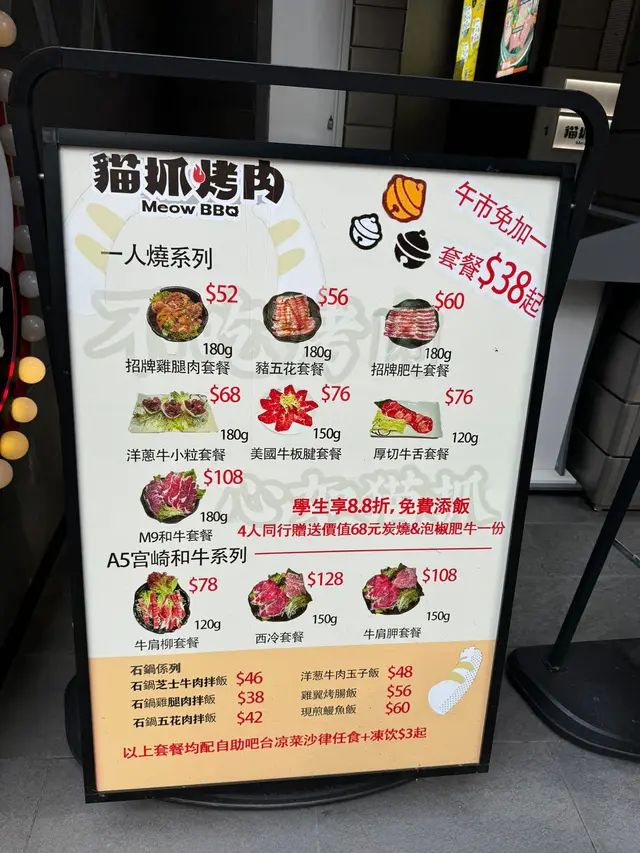想在旺角尋覓高質烤肉體驗?這家環境舒適、服務貼心的烤肉店絕對值得一試!店內空間寬敞,桌面潔淨無油膩感,即使繁忙時段也不會過於擠迫,讓你能輕鬆享受燒烤樂趣。食物方面,亮點紛呈:A5宮崎和牛·西冷套餐 (150g): 整餐的絕對焦點!頂級和牛油脂分布均勻,肉質細膩至極,入口即化,那濃郁的脂香與軟嫩口感,讓人一試難忘,絕對物超所值,是必點之選。貓抓芝士雞: 大推的招牌菜!濃郁芝士完美包裹嫩滑雞肉,香氣撲鼻,口感豐富誘人,與價格相若的照燒雞腿肉相比,風味更勝一籌,令人回味。荔枝蝦球: 創意開胃之選。清甜荔枝與彈牙蝦球碰撞出驚喜火花,酸甜清爽,瞬間打開味蕾。貓抓拌飯 ($12): 性價比之王!僅需12元,醬料調配得宜,味道層次豐富,是搭配烤肉的完美主食。芝士口蘑: 簡單卻驚艷的小食。烤至多汁的口蘑承載著香濃芝士,一口咬下,滿口鮮香滿足。飲品推介:貓草茶: 清新解膩,搭配濃郁烤肉恰到好處,飲後身心舒暢。貼心服務: 店員服務細心周到,全程主動更換烤網或烤紙,確保每道食材都能在最理想的狀態下烤製,提升整體用餐體驗。雖然炭燒小吊桶表現較為普通,性價比不高,照燒雞腿肉雖嫩但與芝士雞相比略顯平淡,但整體而言,憑藉頂級和牛、招牌芝士雞、高性價比拌飯及舒適環境與服務,這家旺角烤肉店瑕不掩瑜,是與朋友聚餐、享受優質烤肉的出色選擇,值得推薦並再次光顧!…查看更多