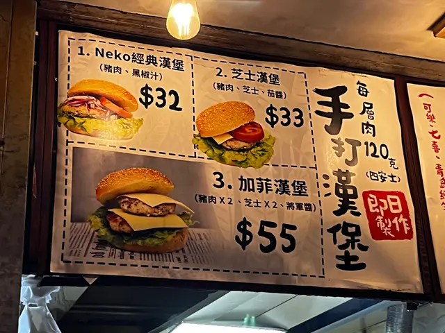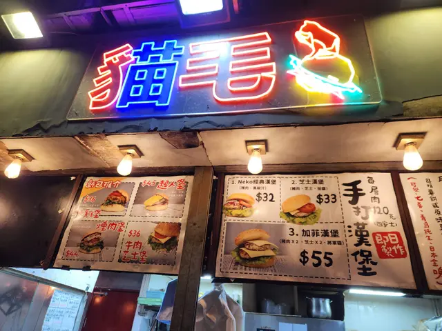 🎈貓毛個招牌類似霓虹燈,再配上貓貓佔領星球既Logo,加上幾個燈泡,好有懷舊風。🎈餐牌有漢堡,有飯食,仲有串燒同煮蜆,食物幾多元化。🎈環境有格調,店員禮貌地邀請怕悶可以先掟鏢等。✨加菲漢堡漢堡中的兩塊豬肉,燒得恰到好處,略帶焦香,肉質鮮嫩,每一口都能感受到豐富的肉汁在口中四溢。豐富的口感下亦顯示出漢堡師之精湛烹調技巧。雙層芝士也是亮點之一。香滑的芝士在口中融化,與豬肉的醇厚口感互相融合,帶出一種難以言喻的美味。✨貓霸兩大塊牛肉煎得金黃,表面微微焦脆,內裡卻保持多汁。每一口咬下,都能品嚐到牛肉的純粹美味與肉汁的豐沛。配搭鮮嫩多汁的菠蘿片帶來一絲清新與甘甜,它與牛肉的濃郁完美平衡,創造出了一種奇妙的熱帶風味。還有蜜糖芥未醬,醬料甜而不膩,帶有點點辛辣感,不僅豐富了漢堡的口味層次,更在香甜中隱藏著微妙的提味效果。✨貓毛朱古力朱古力出奇地順滑,有著一股淡淡的可可香氣,甜度適中,非常適合朱古力愛好者。✨香港人朱古力(60%朱古力)另一款更偏向成人口味,它含有60%的可可成分,味道濃郁,帶有明顯的苦味和深邃的果香。可可濃度剛好能夠平衡朱古力的甜與苦,沒有過多的糖分遮掩,可可的純粹風味得以完整地展現。查看更多