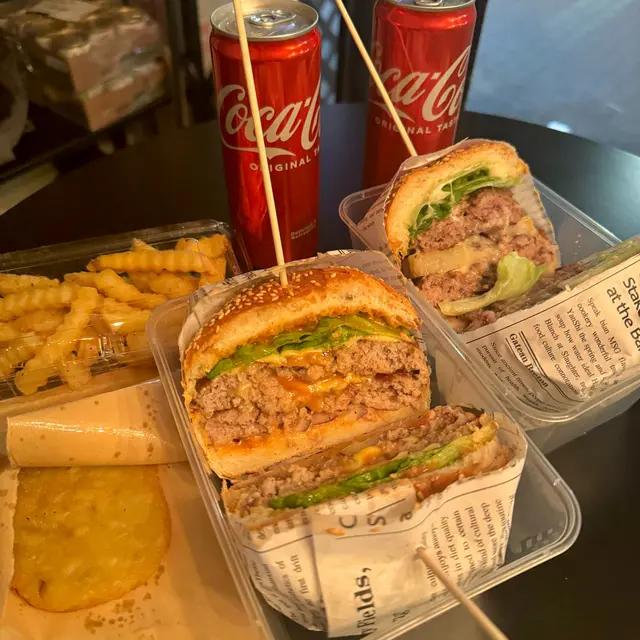 呢間漢堡包店向屯門都算有啲名氣都聽過唔少朋友介紹,除左漢堡包好食,連朱古力都係好飲,今日終於到我試到啦。辣雞漢堡 - 一大塊雞扒非常juicy,最欣賞佢嘅秘制辣醬,唔算太辣但非常之惹味,夾埋蕃茄同生菜食非常好食。貓霸 - 兩大塊牛肉中間夾住一塊菠蘿,菠蘿同個漢堡都係超級juicy,個包大到一啖係咬唔哂成個,佢個蜜糖芥末醬都好食。薯條 - 雖然外賣返到屋企已經淋左啲,但欣賞佢會落啲黑椒碎,所以都唔錯。凍特濃朱古力 & 凍貓毛朱古力 - 個人會比較喜歡貓毛多啲,佢嘅朱古力味香濃得嚟唔會覺得太漏。查看更多