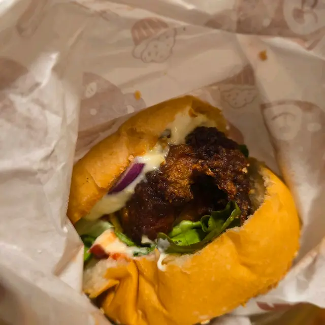 景峰這邊向來都多餐廳,今次試這間外賣漢堡店,位置很近景豐站,過條隧道就到~漢堡包的價錢幾街坊價,便宜的款式$3x就有交易。聽到前面的大隻佬客人都是點貓霸,於是我又跟下風😂😂3個人吃,點了3個包配2個餐。跟餐加$15 ,朱古力要再補多少少錢。貓霸$57有兩大塊牛肉、菠蘿和菜,菠蘿好甜好好味,牛肉勁juicy,配蜜糖芥末醬好夾。個包勁大個,難怪前面個大隻佬客人都點這款!加菲漢堡$55有兩大舊豬肉、芝士配將軍醬,平時很少吃豬肉漢堡,今次吃的豬肉不嚡口幾多肉汁,對女士來說份量有點多。辣雞堡炸雞扒配秘製辣醬,個秘製辣醬真的很勁,我覺得好辣😂不過屋企人吃得辣就覺得好惹味,炸雞扒幾Juicy, 雞皮炸得好脆口,整體都好食。「香港人」朱古力(60%朱古力)(下圖右邊深色啲個杯),跟餐加$22朱古力好濃勁好好味,推薦喜歡朱古力飲品的人一定要試。伯爵奶茶朱古力,跟餐加$14好香奶茶味,茶味偏重,有朱古力味但不甜的,幾好飲!薯條雖然拎到回家已經有點淋了,不過還可以接受!薯條有落黑椒碎的~原來可以要求店員幫手切開個包😳😳,勁方便share嚟食。見到有客人是WhatsApp落訂單(4個貓霸),然後再拎,省卻等候時間。查看更多
