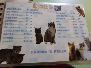 第1次去 , 顺便带埋女朋友 , 去既原因主要有2个. 1想揾CAFE休息下 2想睇下猫星期6去每日最低消费系80$ , 最后好似叫唔够 , 就收160$当补返.女朋友饮果茶 ,叫左个芝士飞碟 我就饮冻朱古力 , 叫左个2款小食自选 ( 春卷 + 麻辣司华力肠)飞碟OK , 够热 即叫即整 , 春卷麻麻 , 唔够热 ,个肠仔比想像中辣 , 朱古力好普通 , 无咩特别最后店员有可能派下D烚鸡俾你 , 跟住D猫就会冲哂舨黎,会打你手抢野食, 所以小心D…查看更多