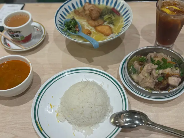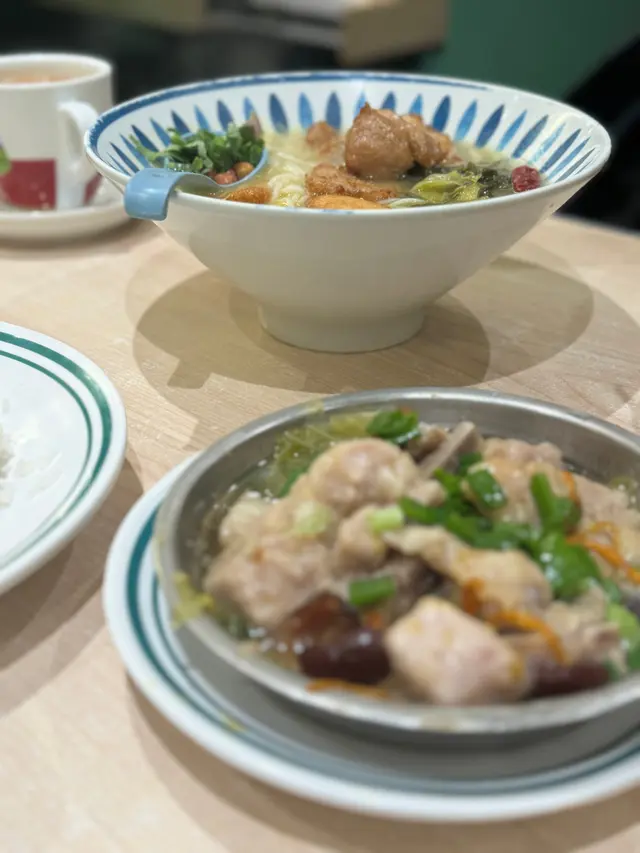 和友人午餐時間經過,無需排隊,點了午市套餐,餐點很快就上了。午市套餐:紅棗蟲草花蒸排骨飯價格:$58飲料:凍檸茶 (+$3)湯:羅宋湯味道:🥣羅宋湯味道很淡很稀,湯裡有料,例如:西芹、番茄、蘿蔔。🍚紅棗蟲草花蒸排骨💁🏻‍♀️喜歡吃煮爛的紅棗。蟲草花不太入味,吃不出來。蒸排骨就是普通排骨的味道,很居家,份量還行吧。整體沒有驚喜,也沒有失望,就是家常的味道,不會太油,午餐趕時間、想有飽肚感時的選擇。查看更多