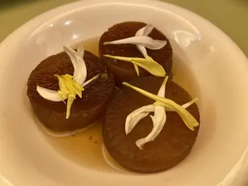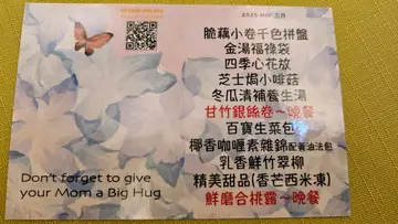 闰蜜的契女与家人为我庆祝生日,因为可以作主便选择以素食庆生。餐厅每月更换菜单,4月的菜单如上。🥬三文鱼千色拼盘千色拼盘够冰冻,三文鱼的口感做得相当逼真,但此物不少素食餐厅也有相同出品,最喜欢的是置于中央的瓜菜丝沙律,清脆爽口,若然可以把不同的食物分开盛载,防止串味,感觉更好。🥬鲜茄翡翠元宝元宝皮有点厚,不是喜欢的类型,饀料以素肉为主也不是喜欢的食材,最欣赏的是微酸的蕃茄汤底。🥬酪梨脆豆腐脆豆腐是较喜欢的菜式之一,轻炸的豆腐外皮非常薄脆,衬以油滑的牛油果,口感味道同样平衡。🥬火龙胡桃挞名字说明一切,简单的小食,火龙果质素不错,微微的果甜是整个小食的亮点。🥬甘竹银丝卷银丝卷也是这晚较喜欢的菜式之一,一向喜爱腐皮卷,皆因其豆香浓郁。是晚的银丝卷炸得香脆,酱汁的浓稠度亦恰到好处,既可以包裹银丝卷令其脆中带软,也为其增添酱香。🥬粉葛牛大力养生汤养生汤说是粉葛和牛大力熬制而成,却喝不出来,但味道还是可以的,汤内有很多红萝卜,反而不见其他食材,这或许说明养生汤的味道主要来源。🥬豉香味菜花锦绣配藜麦饭菜式十分家常,在家偶尔也会烹调类似的菜式,当然餐厅的配料和调味均较丰富。🥬椰香咖喱素杂锦配黄油法包素杂锦材料多样,有豆腐卜、车厘茄和不少根茎蔬菜,最有趣的是素鱼蛋,虽未至于几可乱真,但还是让我有一丝惊喜,因为素鱼蛋与风行已久的豆类素肉口感完全不同,加上咖喱酱汁的加持,菜式顿时变成高仿品。🥬芙蓉烩时蔬简单清淡的蔬菜,时蔬是西兰花而芙蓉是蛋白和金针菇炒制而成,加上点点仿烟肉粒,感觉清爽无负担。🥬香芒西米冻店家知道这枱客人中有人生日,便在西米冻的盛器加上蜡烛模仿成西米冻蛋糕,西米冻的芒果味突出,不失为一个不错的甜品,但若可选择,新鲜的水果更合心意。🥬鲜磨合桃露合桃露味道一般,口感黏稠,与其说是合桃露还是改为合桃糊比较恰当。…查看更多
