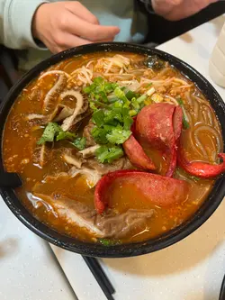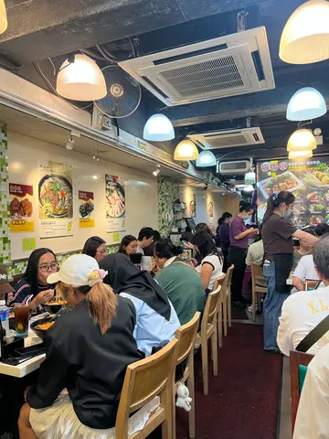 Despite the cramped spots and packed customers during lunch hours, I can see myself visiting this place more often in the future. We had to wait around 15 minutes till we got a seat, where we had to share a table with 1-2 random strangers nearby.The prices for each dish are relatively dish, and are accommodated with a drink with a small fee. We got two noodle dishes with different spice levels in order to test the variety in their broth. We were surprised with how many ingredients the bowl of noodles came with: hefty loads of bean sprouts, vegetables, spring onion, coriander, radish, mushrooms, etc. If only the meat they supplied were also just as much though haha. Overall, I was very impressed with the spice and seasoning of the broth, and it complemented and stuck to the noodles quite well. The dumplings that came with the dish was freshly made and packed wit flavor, tempting me to order even more for the table after the meal. Overall consensus, cheap yet good quality food as long as you're willing to wait for a seat, and if you don't care about dinning atmosphere that much.…查看更多