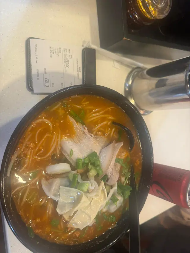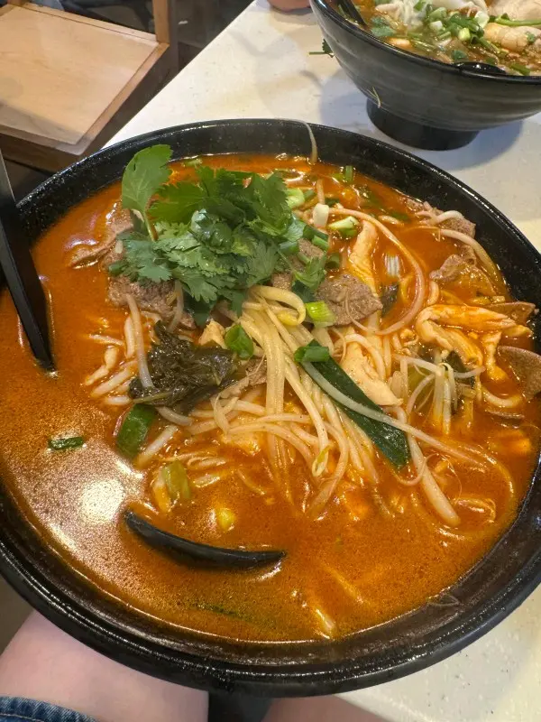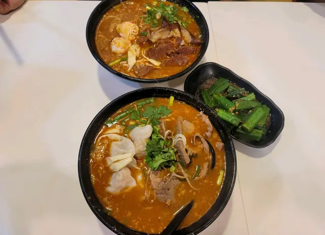Despite the cramped spots and packed customers during lunch hours, I can see myself visiting this place more often in the future. We had to wait around 15 minutes till we got a seat, where we had to share a table with 1-2 random strangers nearby.The prices for each dish are relatively dish, and are accommodated with a drink with a small fee. We got two noodle dishes with different spice levels in order to test the variety in their broth. We were surprised with how many ingredients the bowl of noodles came with: hefty loads of bean sprouts, vegetables, spring onion, coriander, radish, mushrooms, etc. If only the meat they supplied were also just as much though haha. Overall, I was very impressed with the spice and seasoning of the broth, and it complemented and stuck to the noodles quite well. The dumplings that came with the dish was freshly made and packed wit flavor, tempting me to order even more for the table after the meal. Overall consensus, cheap yet good quality food as long as you're willing to wait for a seat, and if you don't care about dinning atmosphere that much.…Read More