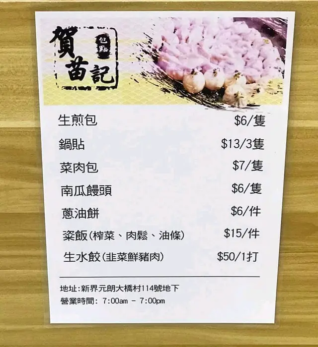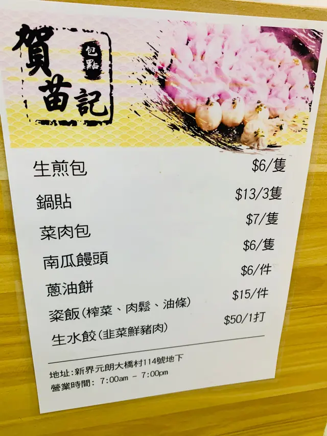元朗賀苗記,必要食生煎包和煎餃子、日日好多人排隊十幾廿隻買走,真的皮薄餡靚,肉汁鮮味,本人鐘意不落醋,可食到豬肉的回甘香,不愧每日都大排長龍記得黎到元朗,必要試下查看更多