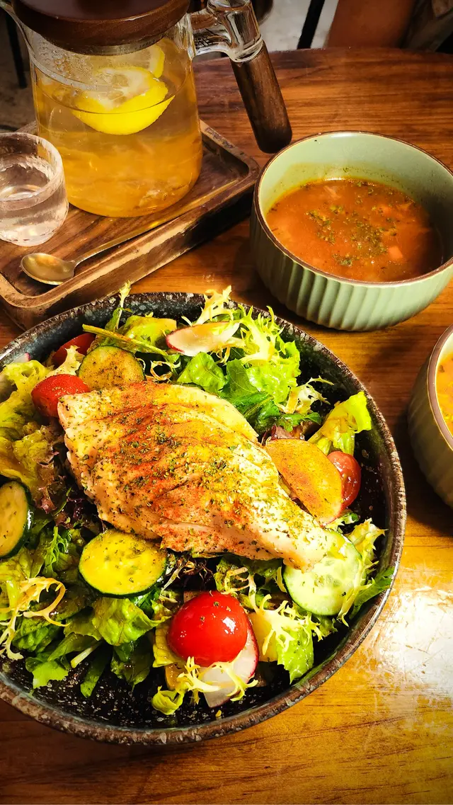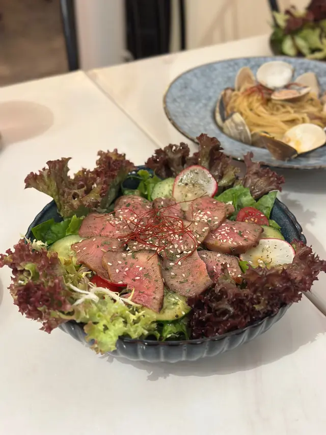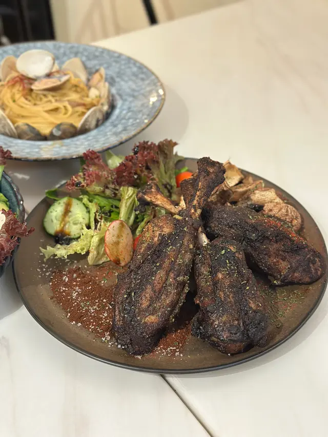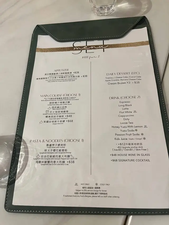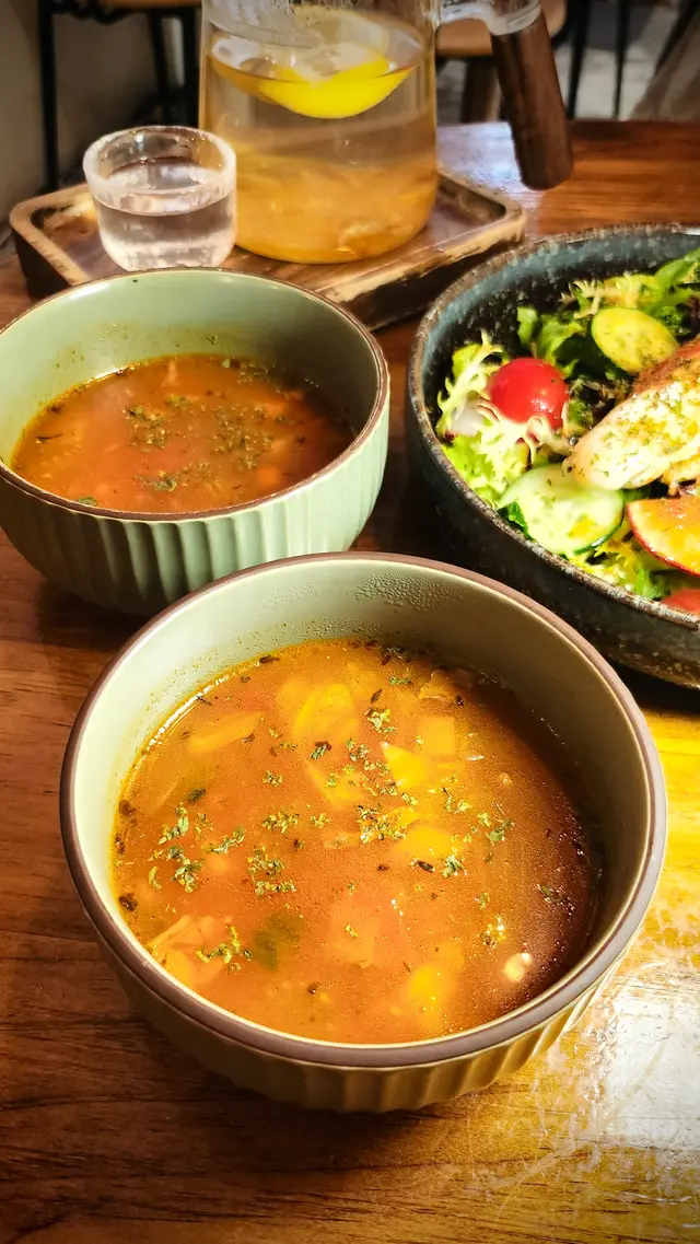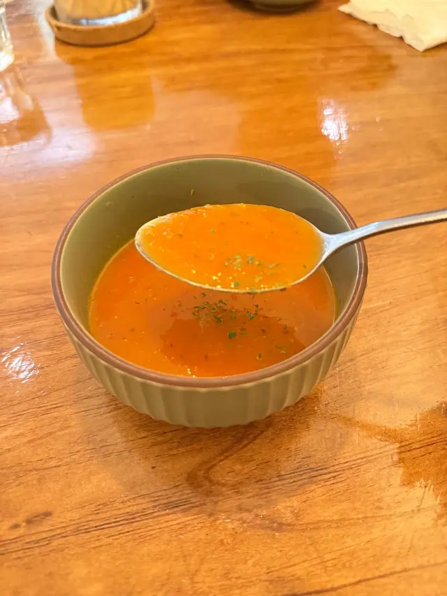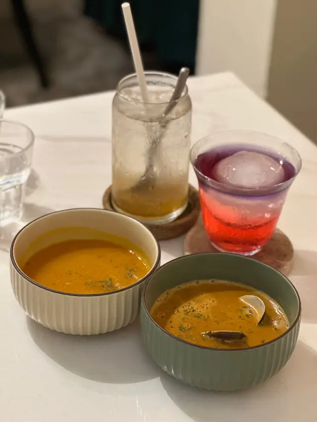 一入店就聞到陣陣咖啡香氣☕店內播住本地廣東歌開放式廚房與咖啡bar滲透出一份賞島咖啡屋獨有的個性😎Order左二人set menu,包含前菜、主菜、甜點、飲品菜式吸引、份量令滿意🥣是日精選餐湯蕃茄濃湯質地濃稠🍅茄味香濃,配上香草點綴味道酸甜開胃🥗慢煮雞胸柚子汁沙律片片雞胸擺成開花形象,賣相吸引🐔慢煮雞胸口感軟熟,入口滿滿肉感柚子汁酸甜配上沙律菜,清爽開胃🥩美國安格斯牛板鍵牛板鍵order左5成熟面層封煎微焦,口感焦香內裡肉質鮮嫩,滿滿牛肉原始風味🤤伴有香菇、薯蓉等配菜煎煮的香菇保留啖啖菇汁整體十分好味👍🏻🥬青醬帶子螺絲粉🍝綠油油的賣相充滿草本氣色螺絲粉沾滿青醬,入口溫暖而有顆粒感牛油煎帶子,散發陣陣濃香牛油風味面層煎得金黃,內裡保持帶子鮮嫩❤️🍹 Yuzu Soda & Passion Fruit Soda柚子梳打與熱情果梳打果子的酸甜滋味配上汽泡感令人清新舒暢🍰 Tiramisu面層灑有厚厚可可粉奶油起司帶點冰感底層基底散發出陣陣酒味層次豐富,令人滿足總結而言,賞島咖啡屋有種與別不同的個性餐點有質素,店員服務甚好下次再來要品嚐一下他們的咖啡作品❤️…查看更多