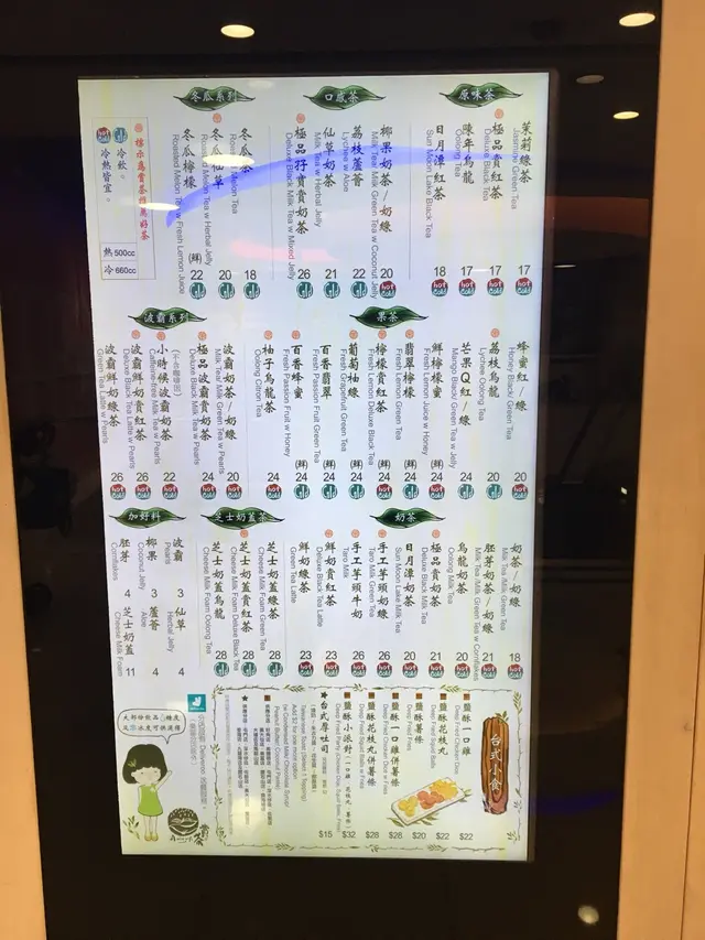 店員話台式飲品一向都偏甜所以我每次飲都會叫半糖或者微糖最鍾意飲芋頭牛奶 奶蓋綠茶 荔枝蘆薈野食就鍾意芝士薯條 花枝丸 朱古力吐司飲一啖飲品再咬一下吐司 就滿足了我的下午茶時光查看更多