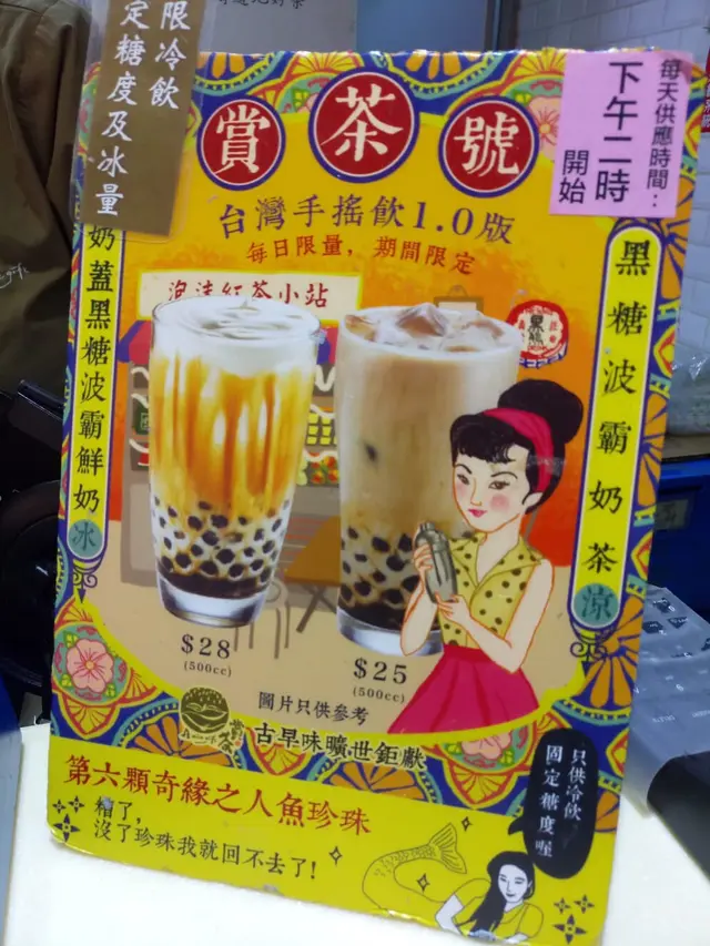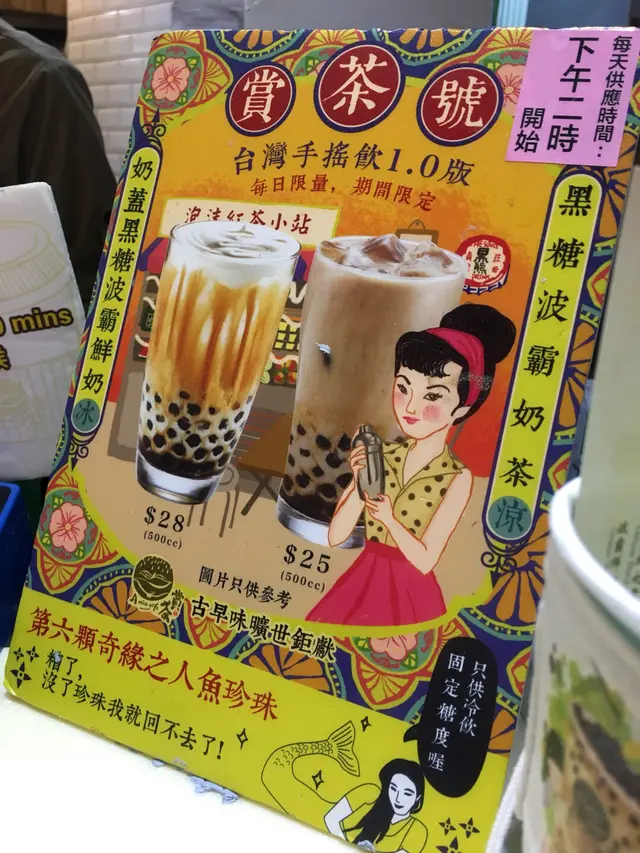 早一段時間見有人讚過,於是臨歸家前就買杯試試。對上一次黎講緊已經係超過年半,時間過得真快。當時生意唔算好,我仲諗呢個位做得住嗎,今日再訪,發現呢個諗法係錯的,特別係週末,想喺屯市搵個位食飯都難,呢間都滿座架。下午茶時間都有少量人排隊買飲料,畢竟天氣太熱,眼見買黑糖飲料客人就唔多。餐牌分原茶、冬瓜、果茶、奶茶、奶蓋等,定價$17-28,可加波霸、仙草、椰果、胚牙等。而黑糖系列分鮮奶、奶茶,分別售$28/25,每日下午兩點起供應,話就話係期間限定產品。奶蓋黑糖波霸鮮奶 $28等候前面嘅客人拎左飲品後,店員先叫號,明明飲品已喺眼前沖好一段時間,飲料到手時杯底已是常溫,黑糖紋路亦已向下流。不過都冇相干,反正有佢嘅logo貼紙覆蓋。直接飲用一口,黑糖屬於甜,但唔香,味道唔持久;面頭一層奶泡仔,奶味反而頗厚、味濃,攪拌後基本上就係一杯奶,可惜一直飲都有顆粒感,兼有點似荳奶。珍珠約1/3,細粒偏腍身,有微弱黑糖味。口感唔夠煙韌,比較軟腍整體俾我嘅感覺還是一般般,不過眼見各間分店成品完全唔一樣,質素係點都要撞手神吧。查看更多