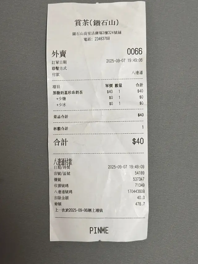 賞茶的荔枝烏龍和白桃烏龍想不到鑽石山那麼多手搖選擇, 這次點了賞茶的荔枝烏龍和白桃烏龍, 喜歡烏龍的味道, 有茶香, 又不會太澀, 晚上飲完都唔會睡不著, 而且少甜相對比較健康, 之前不停飲手搖飲到肥左好多, 所以現在都傾向選擇少甜或者無糖的, 但並不會不好喝, 反而更喝出茶味。荔枝烏龍的荔枝味比想像中清新,而不是那種假假的香精味, 味道不錯, 其實習慣了少甜, 但不會淡到沒有味道。少冰或走冰絕對建議, 因為凍飲其實都不好, 喝完容易肚子痛, 少喝凍飲而喝室溫的反而比較好, 這間手搖店是健康之選, 而且都算美味。…查看更多