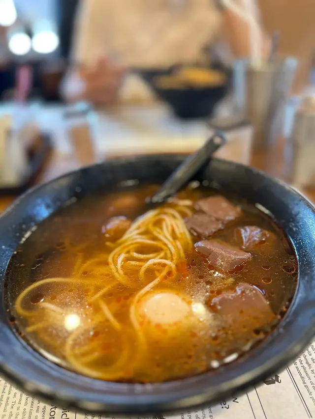 嚟到這間車仔麵店,真係一場味蕾旅行啊🍜!話唔定這間店真係平民美食界的小寶藏。首先,佢個牛骨汁牛丸,每一粒都彈牙又多汁,牛味香濃得黎又唔膩口,真心推介😋!再嚟既秘制軟滑牛腩,超級入味,炆得啱啱好,嗜肉食客必試。邊樣都算,最正既還是車仔麵嘅湯底!小麻辣湯底既辣味啱哂我哋廣東人嘅口味,微辣中帶有麻香,湯底夠哂味道,又唔會蓋過主角。而家飲茶都有人叫辣椒油撈麵,但這個麻辣麵劲得黎又有特色💥。至於配料,溏心豬軟骨真係爽口得嚟又唔韌,軟骨脆口到令人滿足唔停!唐生菜就清新解膩,有助平衡整體口感。不過,光有咁嘅美味還不夠,環境同服務都要講下!店內乾淨企理,絕對唔似舊時候嗰啲車仔麵檔。店員親切有善,即使係自助型式,都保持咗一定嘅服務質素。一句話,這間車仔麵店既食物同服務都強到無得彈,大家下次路過嘅話真係要試吓!👍🤤查看更多