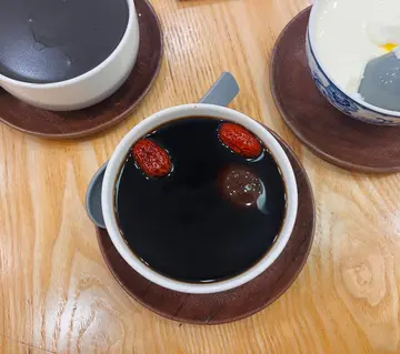 ,总之有中式、港式及台式的。最后选上了一款中式传统,以及一款港式新派,前暂者热食,后者冻食。先分享这个「桑寄生莲子红枣蛋茶」($35), 桑寄生向来对女孩子都很有益处,加上有莲子,又有红枣,够滋润,又补身,甚受女士欢迎。糖水入口十分清甜,带微微枣香,莲子已去芯,松化又无苦味,很腍,鸡蛋亦很入味,赞呀!此外,另加了两粒芝麻汤圆(+$4粒),外皮软糯而有份烟韧弹牙之感,里面的芝麻馅如流沙般,实在味美