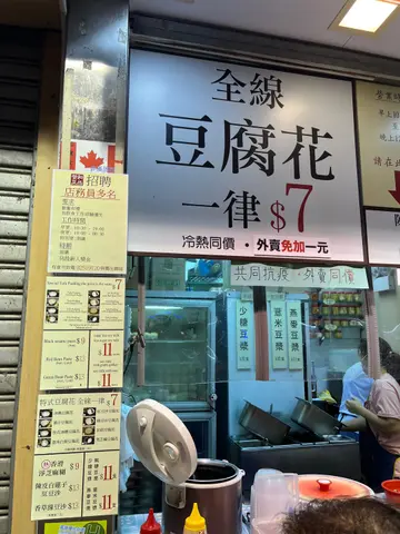 荃湾呢条为食街嘅呢间豆腐花铺,由昔日嘅$3碗食到依家$7碗,依然系平靓正,个个行过都忍唔住要整返碗😁。豆腐花,仍然系又滑又抵食。仲有好多款唔同配搭。通常住附近嘅街坊都会买返几碗返屋企慢慢叹。有黄糖,桂花冰糖水,冰糖水及鲜姜水随你添加。真系好贴心。食多几碗唔同味道都唔过份。