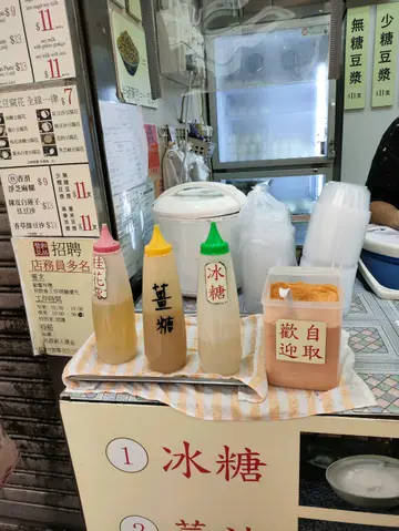 小店特别采用无基因改造黄豆,提供多款豆腐花口味,如姜汁、红豆沙及黑芝麻等。
