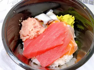 其实外卖和堂食,有心做的话,摆盘装饰应该都要讲究,日本料理除了味道吸引之外,摆盘呈现美感也是她们的特色之一。当你打开饭盒,看见这个画面,第一感觉是什么?觉得会好好吃吗?厨师摆位有心思吗?外表是其貌不扬,一点也不吸引,觉得不怎么好吃,完全引不起食欲,无办法,对日本料理的要求确是比较高。味道方面其实很好,食材新鲜,酱油配搭酸味突出的寿司饭一下子令人食欲大增而且每块鱼生都厚切,绝不吝啬,图中的三文鱼也很肥美,入口即溶,所以若改善攞盘的技巧我觉得一定吸引更多客人,例如加紫苏叶,吞拿鱼腩加些细葱,加些姜片/海藻/日本腌萝白等,令画面更丰富之余亦增加口感,希望贵店可以更进一步