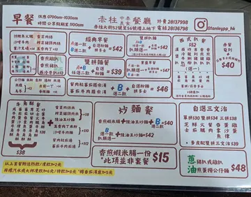 赤柱的餐厅选择其实不多,这算是相对便宜又不错的选择。首先,让我谈谈叉烧炒面。炒面面条弹牙有嚼劲,搭配著香浓的叉烧肉片和新鲜的蔬菜,口味非常丰富。叉烧肉片肥瘦相间,质地鲜嫩多汁,每一口都充满了美味。炒面的酱汁则是恰到好处,让整道菜更具风味。接下来是泰式青咖喱鸡饭。这道菜以嫩滑的鸡肉搭配香浓的青咖喱酱汁,再配上煮熟的饭,为味蕾带来一场美味盛宴。鸡肉煮得刚刚好,保持了肉质的鲜嫩,而青咖喱酱的香气和辣度则让整道菜更加引人入胜。我尤其喜欢附上的茄子,它们增添了额外的口感和营养。这道泰式青咖喱鸡饭绝对是一个令人满意的选择。最后是海南鸡饭。这道菜来自于海南岛,以嫩滑的鸡肉和香气四溢的饭为特色。可惜这里的鸡肉味道和质地只能算是一般。饭也不够香,而且连甜酱油也没有。总之,这家茶餐厅提供了多种选择,再赤柱算是不错的餐厅。