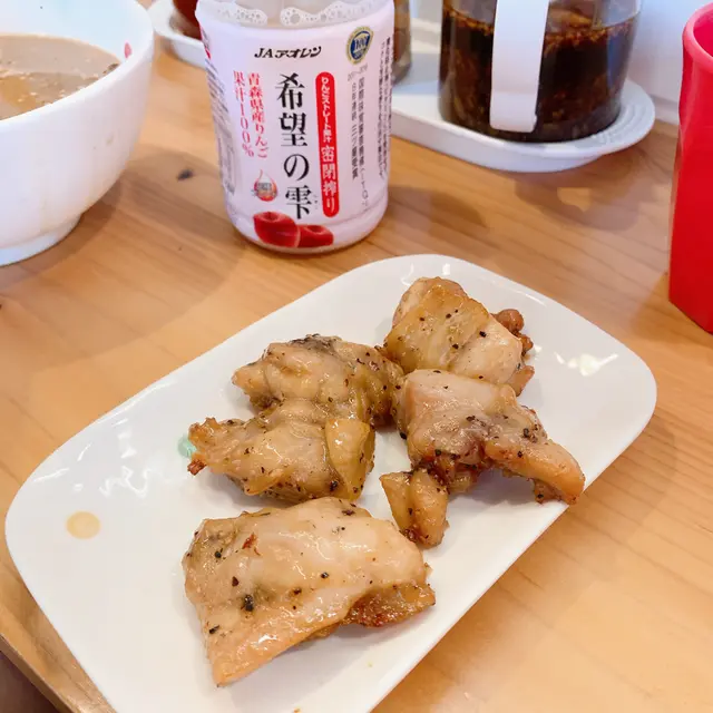 好耐冇食過赤橋拉麵!已經唔記得咗上次係食咩湯底,總之我今日要食黑蒜油沾麵!同左店員講要多蒜,湯入面有生蒜,炸蒜,叉燒,筍,半熟蛋,紫菜。拉麵嚟到,第一時間飲咗一啖湯,真係好濃郁嘅豬骨湯味,夾埋炸蒜一齊飲,真係有種好幸福嘅感覺。😭叫左支青森蘋果汁。🍎呢一個係黑椒口味照燒雞件,食落有少少甜甜地,仲有啲黑椒嘅香味。食過個黑椒口味覺得唔錯,就叫埋個原味嚟食,都係甜甜地嘅,不過我就覺得黑椒味好食啲。兩個女仔冇就住就住咁嗌嘢食,埋單呢個價錢,抵唔抵食自己諗啦。環境方面,枱面乾淨,唔會油淋淋,座位闊落,俾人一種好舒服嘅感覺。查看更多