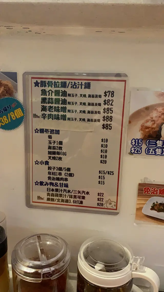 一開始入去見到間店冇人有啲卻步但最後都決定試吓選擇唔算多 有四款 可以簡拉麵或沾麵一食發現呢個價錢食到呢個質素好值!我自己食拉麵好驚食到啲好咸嘅拉麵但係佢個湯底濃得來又唔會太咸!另外佢有兩大塊叉燒 成個碗咁大嫁驚唔夠飽既人可以加多兩塊叉燒😂真心好正!好有質素!食完心情好興奮 終於搵到間岩口味既拉麵仲有發現個廚師幾後生 同埋淨係識講日文因為我讚佢嘅時候要侍應翻譯~我要寫夠二百字比個好評佢地!因為我好鐘意食:)查看更多