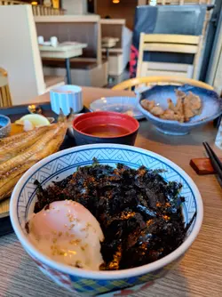 原條蒲燒鰻魚飯定食係完條鰻魚啊,好大條,燒得好香,又夠肥美,朋友仔密密食,見佢食得咁滋味,我都忍唔住試吓,都覺得好好味。鰻魚汁飯都好正。