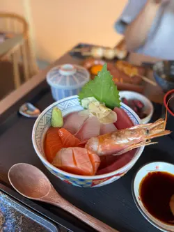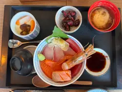 三色刺身丼(吞拿魚,三文魚,油甘魚)賣相好靚,色彩繽紛,刺身係厚切,份量都唔少。三文魚其中一件係三文魚腩,好肥美。幾款刺身都非常新鮮。