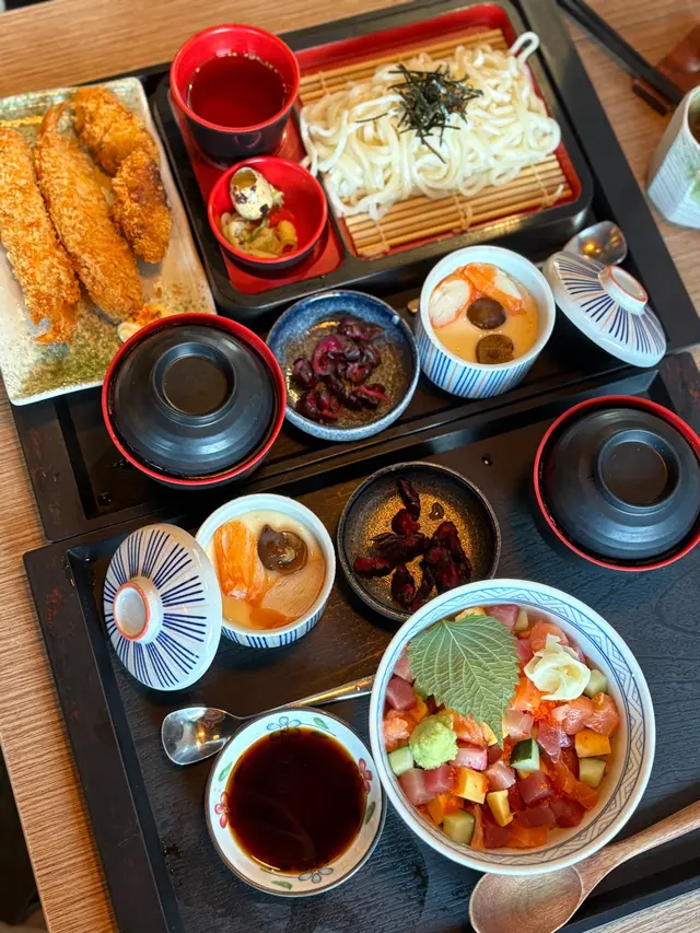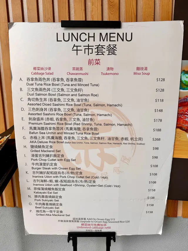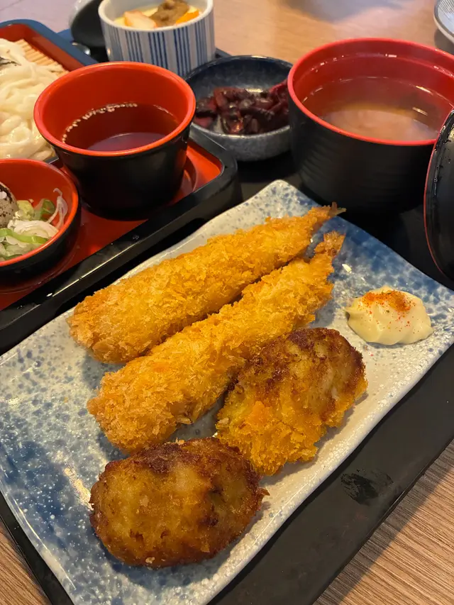 每次去維園做完運動,多數都會嚟呢條食街食Lunch,如果想搵間平靚正又坐得舒服嘅食肆,我會推薦您嚟呢間,我哋3個女人叫咗3個午餐,最後竟然係食唔晒收場,唔係因為唔好食,係因為呢度份量都唔細,所以下次我哋再嚟會叫少一個餐,然後叫小食會ok啲。 🥢椰菜絲沙律⭐️⭐️⭐️⭐️椰菜絲好幼細,蘸麻醬或酸醋汁都好味,麻醬可以令椰菜甜味更出,無限refill椰菜絲我只敢refill一次。🥢吉列海鮮<蝦、蠔>配稻庭烏冬定食 $108⭐️⭐️⭐️有兩隻蝦同兩隻蠔,蝦嘅麵衣比較厚,而蠔就薄薄一層好出色亦有蠔味,至於稻庭烏冬,當然係煙韌無得輸啦。🥢牛肉壽喜燒鍋定食 $158⭐️⭐️⭐️⭐️牛肉無乜肥但唔鞋口有肉味,份量算多而配料亦多,湯底香甜阿媽話好鍾意呢個鍋。🥢滑蛋吉列豬扒飯定食 $98⭐️⭐️⭐️吉豬飯未到我哋已經飽咗8成,所以只食到半碗飯,滑蛋蛋味濃郁而豬扒夠軟腍,係唔錯但可惜太飽了。🥢茶碗蒸⭐️⭐️⭐️⭐️有我鍾意食嘅蟹柳同菇,最重要係蛋蒸得夠滑同有蛋香。 三人共消費: $401…查看更多