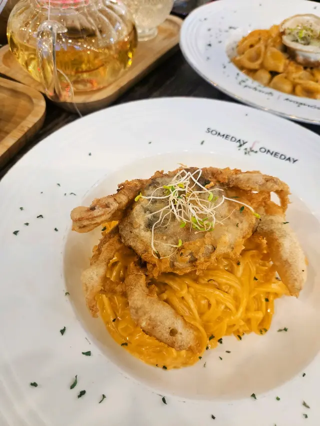 這家小店在商場裡,環境開陽,座位不擁擠。桌上點著小蠟燭,氣氛輕鬆。店員忙碌但客氣,偶爾需等單。我們點了三份套餐,再加一籃薯條。香煎比目魚皮脆肉嫩,墊著薯蓉與時蔬;檸檬牛油汁提味到位,不蓋過魚香。三文魚籽炙燒蟹棒明太子貓耳朵,麵體像小貝殼,有嚼勁,裹著明太子醬;蟹棒帶炙燒香,與魚籽相映。蟹肉牛油果意大利飯偏濕潤,牛油果順口,蟹肉分布其間,味道平衡。飲品要了蜂蜜鮮檸檬茶與蜂蜜柚子蘇打。清爽解膩,配海鮮剛好。薯條粗切,外脆內粉,大家分著吃。套餐價錢還算合理,份量適中。菜式用料實在,細節不花巧。…查看更多