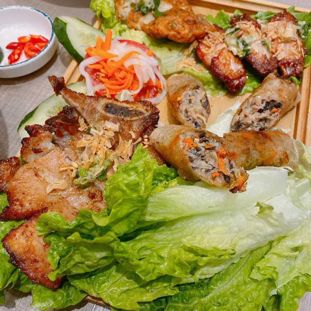 推介指數 Recommendation Level : 🔥🔥🔥近年香港商場內的食肆,大部分都是以連鎖店為主,千篇一律毫無特色,難怪未能吸引外區的客人。不過,有時候一些舊區內,亦隱藏着一些非由大集團經營的小店,除了更具人情味,食物的品質有時亦會給人驚喜。就像這間越南小店,客人主要是附近的街坊,所以價錢十分親民,還附設自助區,提供免費的醃菜及水果。雖然如此,但食物的質素亦不會馬虎,而且還有多款選擇,性價比絕對十分高。In recent years, most of the eateries in Hong Kong shopping malls are dominated by chain stores, lacking uniqueness and failing to attract customers from other areas. However, hidden in some older districts are small shops not operated by large corporations. These small shops are not only more personalized but also sometimes offer pleasantly surprising food quality. Just like this Vietnamese small shop, its customers are mainly local residents, offering affordable prices and a self-service area with complimentary pickles and fruits. Despite the affordable prices, the food quality is excellent with a wide selection, ensuring great value for money.午市套餐 ($58)Lunch Set炭燒豬頸肉撈檬粉Grilled Pork Jowl with Lemongrass Cold Vermicelli豬頸肉燒得非常香口,而且又不會過份油膩,配以芽菜及酸蘿蔔絲,感覺十分清新。至於檬粉方面,除了不會太腍之餘,又不會太乾,客人可以隨意按自己的喜好加上酸酸辣辣的汁液,是夏天最佳的食品The grilled pork jowl is flavorful without being overly greasy and paired with bean sprouts and pickled radish, providing a refreshing taste. As for the cold vermicelli, it is neither too sticky nor too dry, allowing customers to customize it with tangy sauces according to their preference, making it an ideal summer dish.大勒扎肉米紙卷 (加 add$18)Rice Roll Stuffed with Vietnamese Sausage雖然是加配的小食,份量不算太多,但米紙卷的餡料卻絕對不少,蔬菜十分新鮮,而札肉亦有鮮味。唯一美中不足是米紙皮比較乾Although it is an additional snack, the amount is not too much, yet the filling in the rice roll is generous with fresh vegetables and flavorful Vietnamese sausage. The only drawback is that the rice paper skin is a bit dry.咸檸檬梳打 (加add $8)Light Salt Lemon Soda咸檸檬的份量多,可以喝得出味道之餘,又不會太咸The light salt lemon soda offers a generous portion with a balanced taste, not overly salty.😎 評價 - Epicurean Explorer's comments: 🍽️食物Food: 🔥🔥🔥✅食物的選擇多,而且份量充足,味道亦算不錯The food selection is diverse, portion sizes are generous, and the taste is satisfactory.❌無Nil🏡環境Environment: 🔥🔥🔥✅裝修簡潔,而且枱的位置十分寬敞The interior design is simple, and the table space is spacious.❌無Nil💁服務Service:🔥🔥🔥✅待應生的服務非常親切,而且上菜的速度非常快速The service from the staff is exceptionally friendly, and the dishes are served promptly.❌由於待應生的數目不多,所以繁忙時間需要協助的話就要稍等Due to the limited number of staff members, some waiting may be required during peak hours.💰價格Price:🔥🔥🔥🔥✅以這個份量及質素計,價錢算是十分相宜Considering the portion sizes and quality, the prices are very reasonable.❌無Nil…查看更多