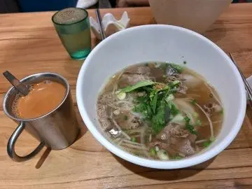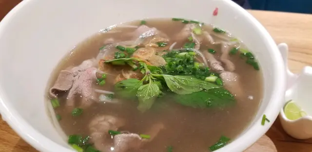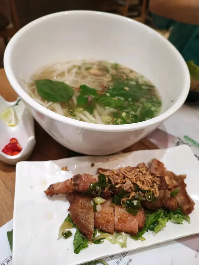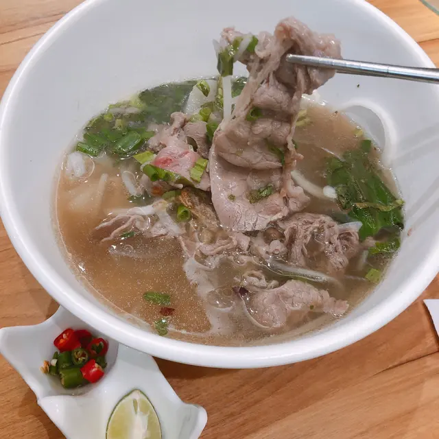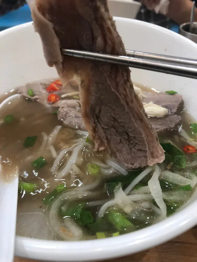 近渣華道街市的街坊越式餐廳,頗受附近居民喜愛,每次lunch,tea,dinner time 都人流滿滿,於是係下午茶時間去試下$50 生牛肉牛丸湯粉 (轉金邊粉)4粒細粒嘅牛丸,口感似牛筋,彈牙的4片左右半肥瘦嘅生牛肉 湯頭清新,夠哂熱,金邊粉爽口配有新鮮辣椒和檸檬,放入湯麵,味道加倍整體份量頗多,可以當正餐啦,而且侍應服務態度良好,主動下單,就算繁忙時間,所以説,整個用餐感覺很舒服😌果然,每個地方都有街坊店形式的餐廳!…查看更多
