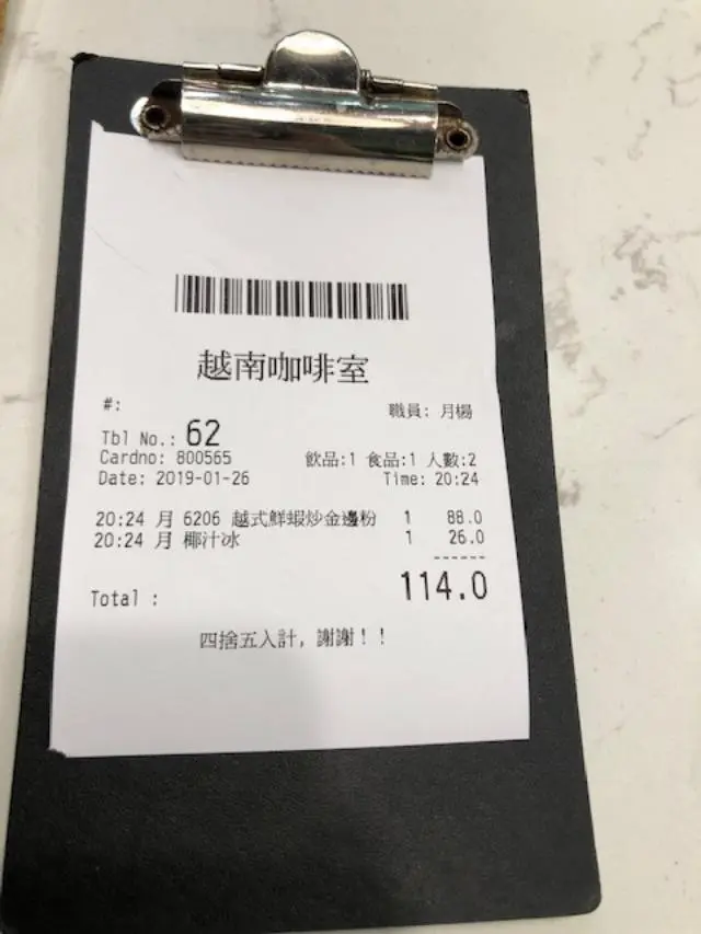 今天因工作關係去到秀茂坪商場,通常做了整天工作,我都唔會去連鎖店用餐,因為太累,唔想自己排隊,叫餐,等餐,捧餐,搵位等.周遊整個商場,選擇不多,但到處都很多人,要等位排長龍.為了方便,所以去了越南咖啡室,可以按機取票,等一會兒入得.坐低望望餐牌,一個人都是吃碟頭飯,或河粉比較合適.河粉有套餐,連飲品,價錢不算貴.但是,工作累人肚餓,所以叫了越式鮮蝦炒金邊粉,再加一杯椰汁冰.金邊粉到了,蝦尚算多,鮮不鮮,則可討論.碟粉沒有花生碎,少了種脆口,稍為可惜.粉有點辣,但不算好辣,可以入口.不過,最奇怪是配少少菜,當做沙律?為了"有營"?我通常不吃這些配菜,很怕它放了整天,不知衛生不衛生.為此,建議餐廳不如用花生碎換走這少量菜更好吧.椰汁冰,是汁不是沙冰,普通,不值一提.值得一提的是餐廳的裝修,油紙傘,草帽,再加上一輪單車.可能老闆認為這是越南特色:三輪車夫嘛,梁朝偉都拍過的戲.然而,真的嗎?若單車換上鳯凰牌,立即變成中國特色啦,是我想像力豐富了.埋單$114,食物普通,但買過想像,當睇了齣戲,略算合格(不過我會曲線比佢環境5星滿分既!!!!)查看更多