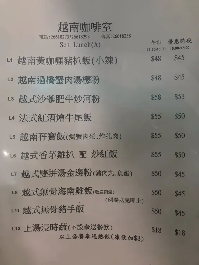 餐廳:越南咖啡室 (觀塘)地址:觀塘秀明道101號秀茂坪邨秀茂坪商場1樓114號舖越南餐廳一向俾人嘅感覺都係比較貴,但係喺小區秀茂坪商場一樓就有一間越南咖啡室,入邊食物嘅水準ok之餘價錢亦都好平民化,尤其喺秀茂坪呢啲貧窮、新移民同長者聚居嘅地方,真係幾吸引人嚟幫襯。2點幾下午茶時間嚟到呢間餐廳,雖然佢已經出咗下午茶套餐,但係午餐嘅優惠原來3點鐘先開始,不過唔緊要啦,冇理由等45分鐘為咗平果幾蚊嘅😂。呢個時候唔算太多人,唔使等位就有卡位坐,上菜嘅時間亦相對較短,唔知係咪因為少人嘅關係,職員嘅態度都好友善同好客☺️呢度嘅午餐四十幾至五十幾蚊不等,由於兩點幾未食午餐都幾肚餓,決定叫個飯嚟食,所以就叫咗個越式無骨海南雞飯,$50送例湯仲要送熱飲,都真係幾抵😍海南雞飯嚟到,第一個比我嘅感覺就係「又話無骨嘅,點解好似普通嘅切雞咁有骨,仲要幾多添😅」,不過算啦我又唔係無牙,學朱咪咪話齋比多少少牙力去食就搞掂🤓雞嘅份量唔少,大大小小都有十舊八舊,而飯好明顯都真係雞油飯黎,都幾吸引🤤仲有唔少蔬菜伴碟,真係唔話得。雞都幾嫩口,都有鮮雞味,不過就凍凍地🙈飯都唔暖嘅,有少少感覺好似放左一段時間先拎出黎咁,不過就真係好抵食,先$50唔好嫌咁多啦😂一陣好食果啲又話貴,$50真係算係咁架喇😙例湯係節瓜雞腳湯,有少少濃味,似係加左啲味精,不過都尚可接受唔會咸到飲唔落,亦都比足料嘅,有一隻雞腳同幾舊節瓜。雖然話價錢係平民化,呢間餐廳嘅野食亦都係值得一試,不過就睇下大家有冇呢一個耐性黎到秀茂坪呢度食啦🙈我諗如果唔係經過呢頭都唔會專登走來秀茂坪掛😂查看更多