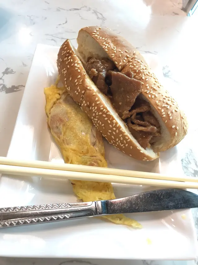 沙爹牛肉潛艇+火腿奄列蛋+熱狗🌭️,肉和香腸都沒有吃,淨係食左個包皮,有牛油的部分除外。本來想食米紙捲,裡面全部都是蔬菜的那種,但它要11am才開始供應,早餐沒有供應,所以最後去到也不知道吃什麼好,便搭著爸媽叫的餐,隨意吃了幾口。#潛艇堡 #越南 #🇻🇳 #越南美食 #越南餐廳 #沙爹 #牛肉 #奄列#omlette 查看更多