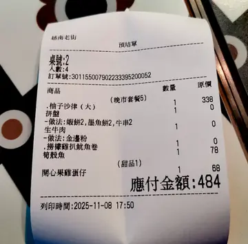 住筲箕湾老友约我食晚餐推介《越南老街》真材实料价钱亲民,食店装潢简洁摆放可爱公仔,并设户外座椅可享秋风送爽。我们点左晚市套餐$338(5点后供应)柚子沙律:泰国柚子肉清甜,🥗沙律菜新鲜嫩绿爽脆。拼盘:虾饼:虾饼爽口弹牙,墨鱼饼:墨鱼饼夹有带子超级正,牛肉串烧:厚切牛肉粒,肉质腍滑肉汁多好好食。熟牛肉檬粉:牛肉肉质嫩滑,牛骨汤底鲜甜无味精,配洋葱🧅芫茜🌿够健康。烧牛肉鱿鱼卷捞柠粉:烧牛肉味香腍滑,鱿鱼卷🦑带鱿鱼肉粒爽口,加泰式酸辣汁,提升美味。泰式香煎羊架+$25(2件):羊架肉质结实有咬口,味道不错。饮品:即磨咖啡:味香浓但有点苦。(饮品半价)椰子鲜奶咖啡$19:香甜可口。甜品花生炼奶格仔饼$48 :涂满花生酱上加脆花生粒配朱古力酱,口感甜而不腻。开心果鸡蛋仔:卖相靓靓,开心果味香。是(天后临记)提供。注:现赞好社交平台餐厅赠送椰汁糕/啫喱杯两杯,超级正。餐厅优惠啤酒买2送1,外卖88折(套餐下午茶除外)。…查看更多
