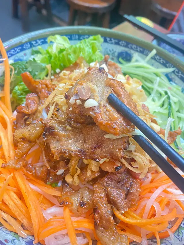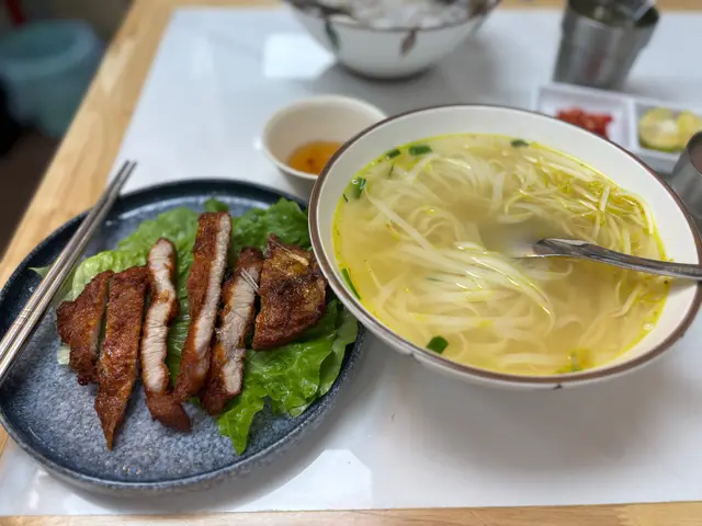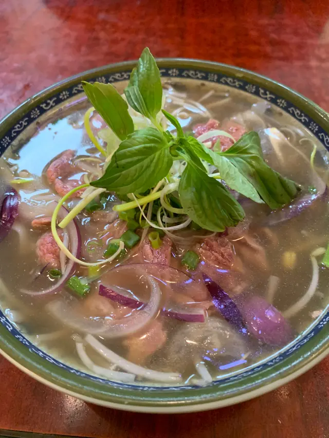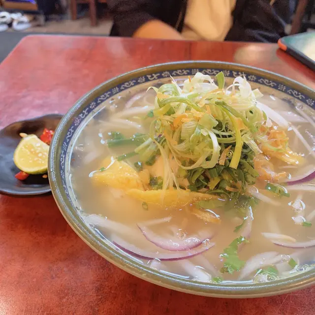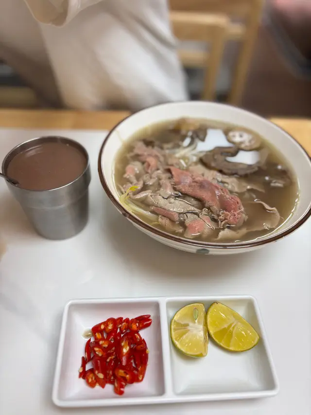 想食越南河但又唔想食連鎖鋪頭,上網搵到間隱世越南店,睇佢餐牌見價錢好平民,於是就去搵下。間餐廳名叫越南餐廳 . 河 . 飯,真係夠哂簡單直接🤭但堅難搵,喺新墟街市條巷仔入面,仲要兜咗兩次先搵到果條勁隱閉嘅後巷,如果唔係有心去或者住附近嘅街坊都幾難搵。入到去聽到廚房同樓面溝通好似真係講緊越南話,超級地道,隔離仲有間士多仔專賣越南商品,懷疑啲貨都係隔離入😆🥩越南綜合牛肉河🍜牛肉河有生熟牛肉、牛丸同牛展,湯頭飲落濃郁得嚟唔死咸,河粉細滑,仲有好多芽菜,不過並唔係越南果種粗短芽菜有啲可惜,隨河附送辣椒粒同青檸可以根據自己口味添加。牛肉同牛展都係正常野,反而粒牛丸幾好食,有胡椒味亦都幾爽彈。🐷香茅豬扒雞湯河🍲豬扒同個湯河係分開上,雞湯河相對清淡,加番頭先碗牛河嘅辣椒粒無咁寡。香茅豬扒有驚喜,即叫即煎熱辣辣,而且真係有香茅碎連住塊肉,讚!午餐時段免費包一杯熱飲,不過並無寫喺餐牌上面,係侍應提到先知。隨咗我地之外都聽到有幾枱同樣都好疑惑,如果餐牌寫清楚就更好喇🤔不過以呢個價錢嚟講性價比絕對OK,本身唔係太大食的話都值得推介支持下小店🙂↕️…查看更多