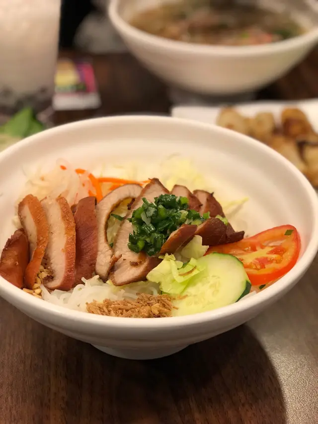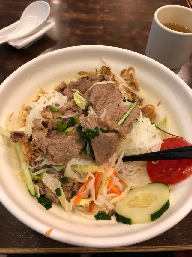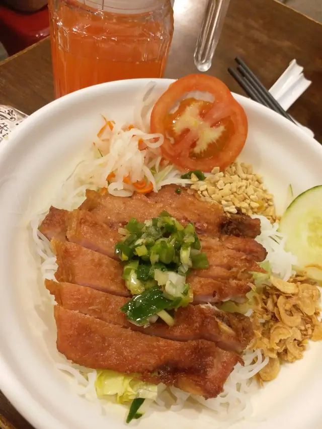 第一次食越南菜,咁啱趕得切黎食下午菜。$36有1碗粉加飲品其實幾抵,我地叫咗3個粉同2個小食。碗粉又唔會因為係下午茶所以縮水,湯底好夠味,個人覺得啲麵條嘅軟硬度適中,撈檬配埋汁都幾滋味。配料亦都唔汁輸,香茅豬扒同豬頸肉都醃得入味又唔會太鹹,煎得好香。生牛肉片又唔會太生,啱哂我。比起粉麵,小食就唔係幾抵,份量有啲少,不過蓮藕釀餅同蒸粉包又真係唔錯,值得一試。而特飲都淨係加$4,就緊係叫番杯椰汁冰同香芒雜飲。查看更多
