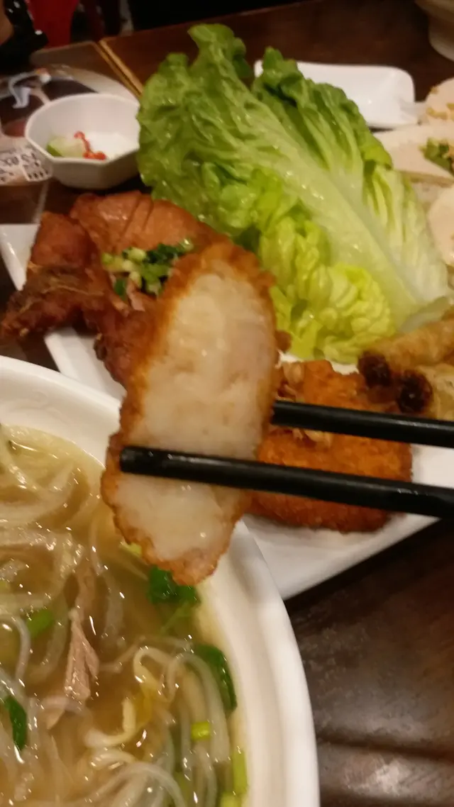 自己成日都係好鍾意去越南餐廳食飯,東南亞黎講越南菜都算好出色。今次又去啲連鎖野,貪佢品質有保證,食物水準較穩定。屯門碼頭附近越南野既選擇唔算太多,就同友人們黎左呢間越棧食飯。普遍啲餐價格大概都係40-60蚊左右,同出面比較差唔多,算係較平民既餐廳啦。我叫咗個香茅豬扒撈檬,香茅豬扒一塊切件上,份量幾夠唔會太少,仲有少少炸洋蔥同花生碎好香。撈檬嘅精髓當然係個汁啦,佢個汁酸酸甜甜,唔會酸到辣喉嚨,十分開胃。食完呢個之後雖然夠飽,但係仲想食其他野查看更多