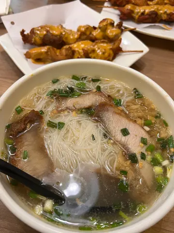 有时候食得多西餐/ Cafe,都会想食返啲粉面 (唔通餐餐都一百几十咩😛)今次我同朋友行开长沙湾,就快快手食碗面。越泰轩,装修平民得嚟几舒服,黄色加灰色嘅工业风墙身,cafe般嘅木枱。我叫左越式扎肉汤粉,冬荫功汤底,$39,依个价钱有咁嘅味道,我觉得可以喔~😋沙爹串烧,$30/3串,都沙爹汁甜甜地,几好食~ 再加杯冻奶茶,依餐平价得嚟食得过!专程去食就唔会架啦,不过经过长沙湾想快捷方便食个午餐或者下午茶,依间系几好嘅选择☺️