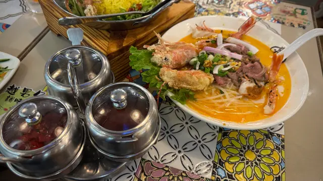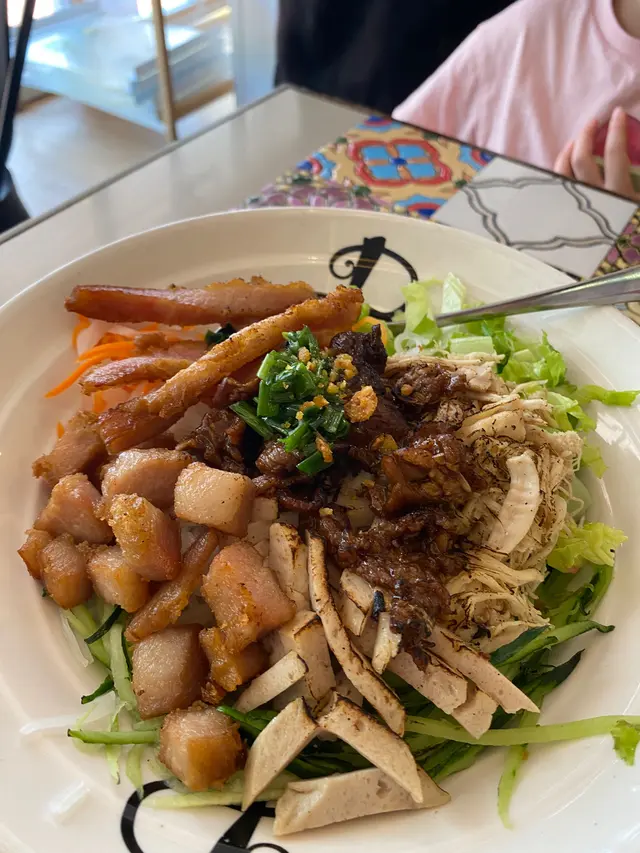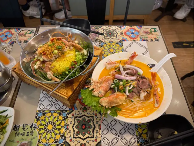 越南野食多數係撈檬,湯河,法包越南仔搞搞新意思係呢個月推出左熱辣辣炒野同焗野系列炒野有雙蝦海鮮飯香辣舊越南咸菜牛肉飯越式脆雞炒金邊粉焗飯有菠蘿雙豬紅蕃茄焗飯沙爹四鳥焗飯皇牌三鮮芝士焗飯炒餐餐同焗飯餐都有餐湯冬蔭功湯同雞腳湯先黎飲湯冬蔭功酸辣開胃辣味程度比較高越式脆雞炒金邊脆雞非常脆肉質又夠嫰金邊粉非常彈牙味道比較酸酸甜甜皇牌三鮮焗飯有大大隻蝦帶殼青口大大隻蠔芝士汁拉絲撈飯一流跟餐有小食另加$15仲有煙三文魚…查看更多
