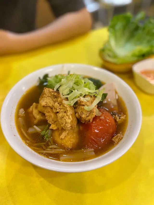 叫左個蟹豪檬粉 暫時食過最好食嘅蟹豪檬粉之前系出面食 蕃茄偏酸 呢個啱啱好 唔會太咸太酸而且扎肉彈口 唔係死實嗰種豆卜亦都索到啲汁好入味至於糕點屬於微甜 椰汁比斑斕味較為突出查看更多