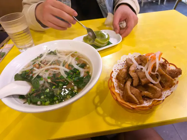 又去大窩口體育館度做完gym,行返去附近啲街度揾食咁啱朋友話想食越南嘢,就直接入去呢間做完運動特別肚餓,行過收銀嗰度見佢仲有啲糕點即刻無比心動,想補一補糖分,就叫咗個班蘭葉綠豆糕兩個人share,唔會太飽食完都仲食得落正餐,唔算好驚艷 斑斕味都唔係特別出但係甜甜哋 煙煙靭靭咁都唔錯之後正餐我叫咗豬扒湯河, 佢係分開上的, 個湯河正常 湯底偏咸少少, 不過我本身比較重口所以覺得ok個豬扒夠肥調味幾好, 都好食嘅 唔會話好乾好柴, 但係呢 真係有啲油咗少少一路食啲油滲透晒下面張吸油紙, 夾埋每舊都有油光不過偶爾食下啲邪惡嘢開心下都要嘅, 唔係日日食可以enjoy下~查看更多