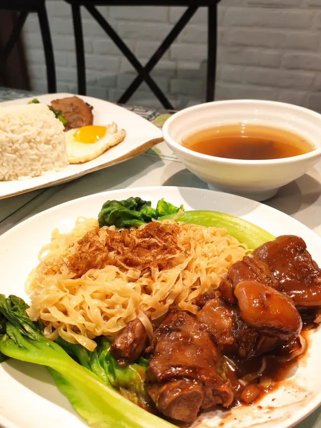 朋友叫我一齊過黎食,話支持社企。起初估係應該普普通通,諗住食得飽就算,一入到去坐低睇下餐牌,發現原來好多款式選擇,而且仲有涼茶飲,好特別!!!之後我叫左個蝦子豬手撈麵試下,超好味又多汁,亦帶有蝦子風味的口感,豬手又大隻