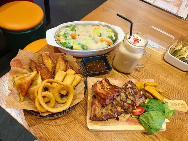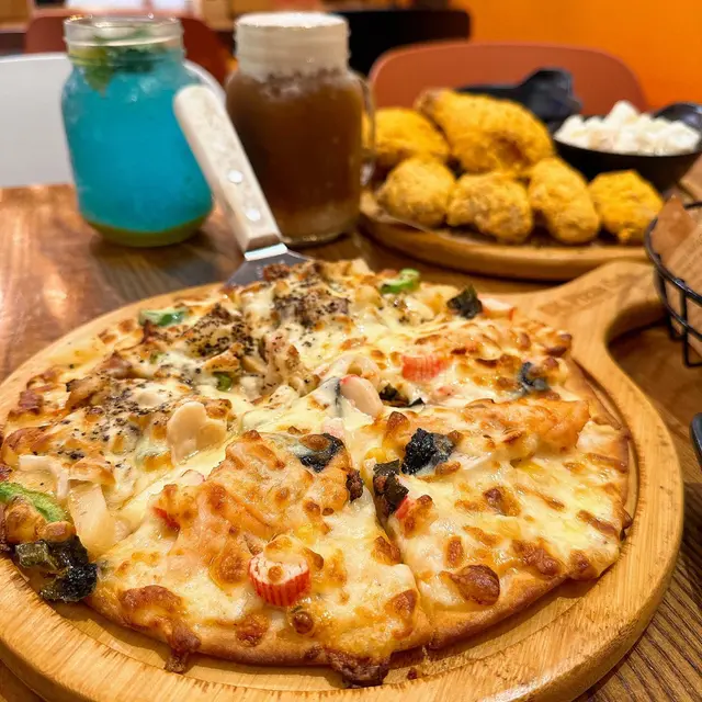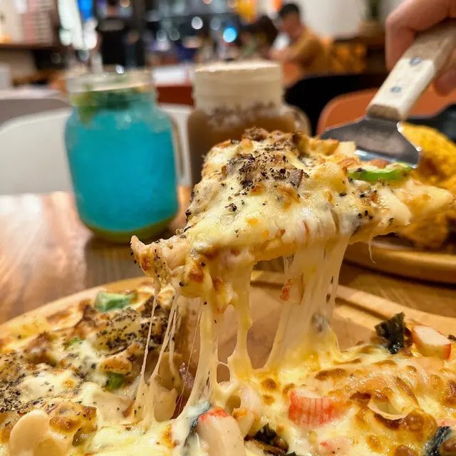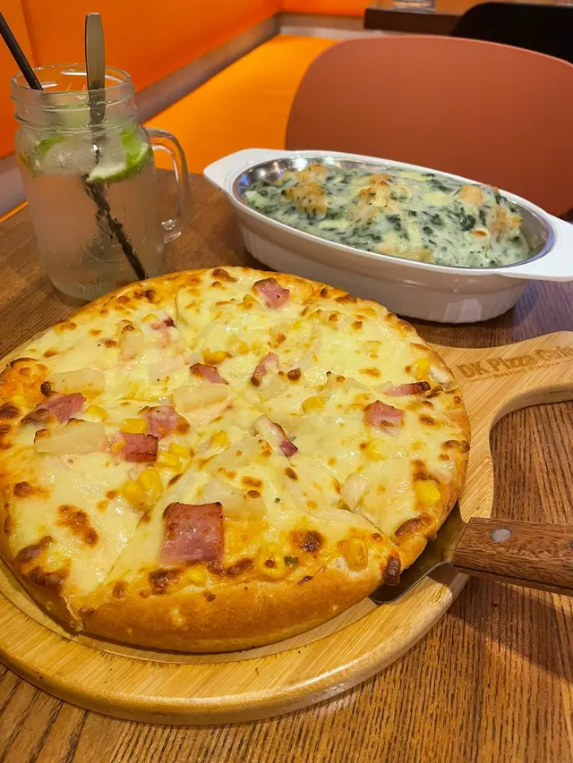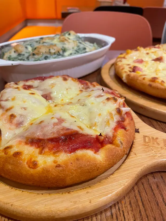 🍕 pizza 好多種味道任君選擇,亦有唔同size,6寸一人食唔太飽啱啱好😊 多人開party 堂食外賣到會又得,非常靈活。泰式雞肉pizza 皮底香脆可口,菠蘿🍍甜甜地,整體唔錯!焗 pasta 味道亦都剛剛好,不鹹不咸,都幾大眾化!今次叫咗個黑松露雞肉意粉,黑松露味道唔係話好濃,但係意粉有少少鹹味,加埋蒜茸一齊焗夠哂香~ 葵涌地鋪cafe較少見,鋪面裝修簡潔舒適,橙色tone令人開胃~ 貼心服務,態度良好!平民價錢,舒適享受 😎…查看更多