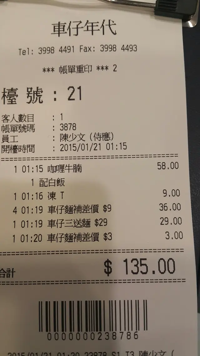 我同老公and叔仔諗住岩岩收工,食埋宵夜先返屋企la, 經過車仔時代lee間野,諗住開張到宜家都未試過食,試下la, 一坐底叫左4樣野,1---咖哩牛腩飯+凍奶茶 2---菜甫煎蛋+魚皮鮫+牛腩+腩汁 車仔麵 3---車仔麵小食(雞翼尖+羅白+豬皮+魚旦) 點知。。。*&%$#@#咖哩腩飯牛腩,鞋既(有一舊仲趙唔爛比我吐左)