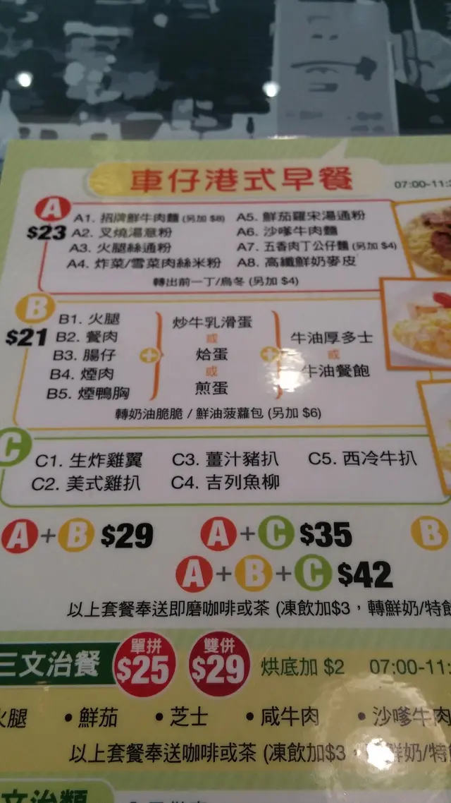 奶茶,幾滑,唯一覺得lee樣ok:)車仔麵魚鮫---ok, 牛腩---有一舊+碎,菜甫煎蛋---ok, but 同車仔麵唔夾,湯底咸(似只係加左鹽同事油既水咁)小食雞翼尖---ok, 羅白---無味,朱皮---益既,魚旦---又腥,又泡總括黎講,不可一,不可再,向車仔說不