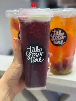 平时lunch time都好想买野饮过下口瘾但成日饮珍奶/柠檬茶都真系几唔健康🫠朋友推荐 #轻时光 主打健康水果茶同奶昔🍎🍹Fresh得嚟 茶味香浓🍃仲要超大杯!! 成个下昼可以慢慢叹😆🍹超级水果茶 平时饮开少甜叫半糖岩岩好仲可以叫走冰❄️岩晒中意养生既OL 今次叫咗桂花乌龙茶底好香桂花味🌼水果份量好多 好清新 👍🏻🥭芒果冰茶昔 浓浓嘅香芒味 好足料系新鲜芒果嘅味道同平时出边街饮𠮶种人工味好唔同👍🏻🍵超级菠萝茉莉绿茶朋友坚持要饮热野☀️呢款茉莉绿茶好香带有菠萝嘅酸甜味🍍开胃又清新Take Your Time 轻时光📍中环威灵顿街166号后座地下