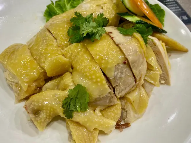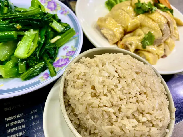海南雞半隻、斑斕葉雞油香飯、蒜蓉炒菜芯
