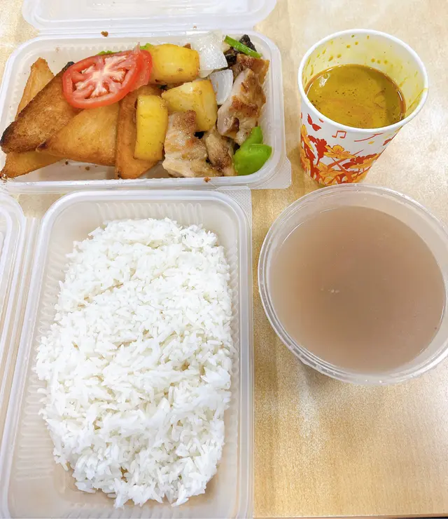 今日又係講吓外賣呢間小店係第一次幫襯不過原來都好出名出名在食咖喱同事介紹必定要食乾煎咖喱出於好奇心下就問咗佢乾煎同普通咖喱有乜分別原來乾煎咖喱係會多4塊炸多士首先講返份量絕對抵食夾大件一盒餸 一大盒飯再加一杯咖喱汁同一碗老火湯基本上食完飽足成晚咖喱汁典型茶記椰香咖喱 唔辣少甜非常啱我口味炸多士炸到非常香脆點咖喱汁食掛汁惹味雞扒雖然係雪藏但肉質絕對唔會淋晒又冇乜肥膏雞皮煎到脆卜卜最後講吓價錢用Apps叫有平盛惠$50一份性價比非常高以後會再多多幫襯…查看更多