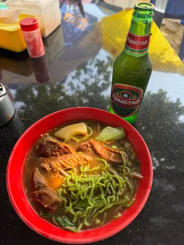 因为住隔离酒店,今朝就去左呢间食早餐。同男朋友叫左碗牛腩面,双蛋面同一杯自家制岩岩整好嘅热豆浆。面底仲要系菠菜面,好特别。杯豆浆无落糖但都好好饮,系浓浓嘅豆香味。呢间舖头好有人情味,老板又好人,最尾请我地食左呢碗朱古力味豆腐花。入口系真朱古力味加埋淡淡嘅姜糖水。真系好好味😋 仲要朱古力唔系好甜,所以食晒成碗都唔觉得漏。老板话自己本身呢有出四只味豆腐花,咖啡,朱古力,麻辣,仲有一只就唔记得左。老板嘅认真出品,真系好值得欣赏。个度仲有bbq,下次去试下😚