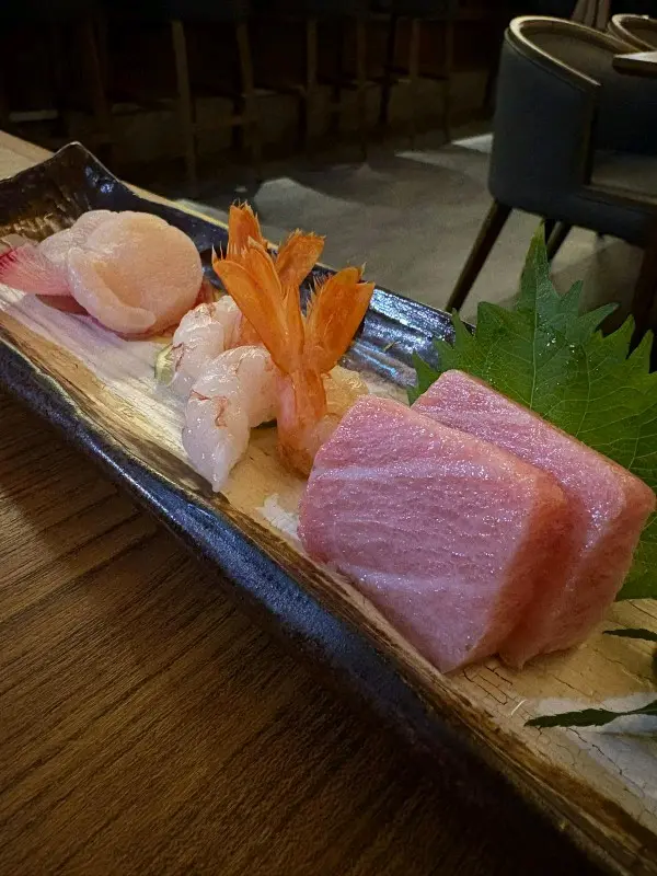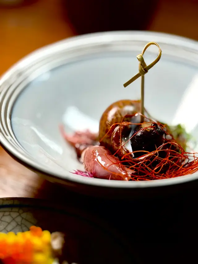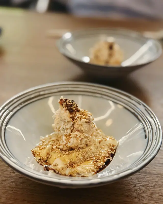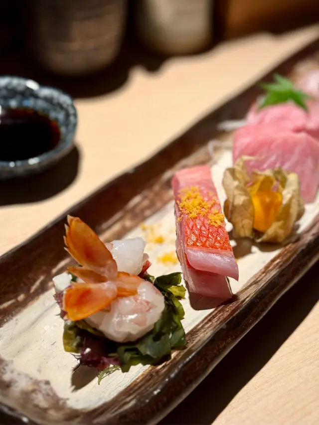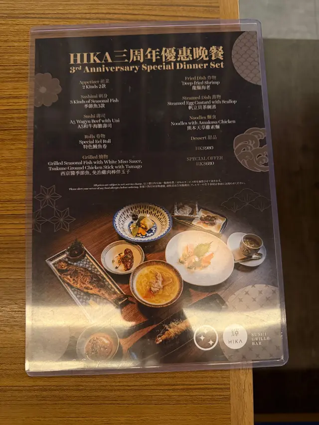 在日本,幫襯得居酒屋的,就要接受店内環境擠迫、座位殘舊、擺滿用過的清酒空瓶、掛滿各類海產的海報,甚至滿場依然不散的燒烤味道,這通通都是日本居酒屋的特徵。在香港的日式居酒屋,我卻找到地方寬敞,適合三兩知己,靜靜地聚聚舊吃點日式美食的地方。這一間位於銅鑼灣渣甸街鬧市 - 輝 Hika,就是一間地方寬落和式裝修的日本食肆了。這天就與女兒來到這裡,靜靜地在這裡商討一下人生大事。一入座見到枱上的餐牌,三週年優惠晚餐有減價就點了兩位。這個餐一共有十度菜式,先到的是桌前小吃,香脆到不得了和有一股獨特的燒烤過的香味之燒鱈魚片,舔上沙律醬去吃更加惹味。前菜二款是來自日本之黑梅貝和螢光魷魚,是新鮮貨色不用置疑。刺身是季節魚三款,全部都是厚切,分別是劍魚腩、拖羅和深海池魚,一啖一口刺身就是滿足感覺。壽司確令人驚喜,是A5和牛海膽壽司,和牛肉經過輕輕炙燒之後,油香即時呈現,海膽是新鮮沒有半點異味,互相配搭之下,來多一件就更好了。卷物是鰻魚特色巻,以pancake 皮包裹著明太子、蛋沙律和鰻魚,以紫菜絲作點綴,煎得香脆的鰻魚,明太子與蛋沙律出奇的配搭,帶出卷物的特色。燒物是西京醬燒厚切鯖魚和免治雞肉棒伴玉子。西京味噌醃過的鲭魚,以慢火燒烤,魚肉保持香滑。而雞肉棒烤得也出色,外層烤得香口内裡免治雞肉没有柴皮,仍然保存嫩滑感覺,配上蛋皇吃來更加幼滑,值得一讚。炸物是龍鬚海老,比天婦羅海老更有特色,以銀絲米粉裹著大虎蝦來炸,又香口又啖啖肉,爽呀。蒸物有帆立貝蟹肉茶碗蒸,是水準之作,茶碗裡的一粒靈魂 - 白果,就能判定這餐廳是正宗一絲不苟一點也不馬虎的做法。麵食是熊本天草雞素麵,天草雞是日本體型最大的地雞,口感煙韌,連雞湯和素麵一起吃,是滋補養生之物。最後甜品選了豆腐雪糕也不錯,給口腔一點甜,給今晚十度美食畫上十全十美的句號。…查看更多