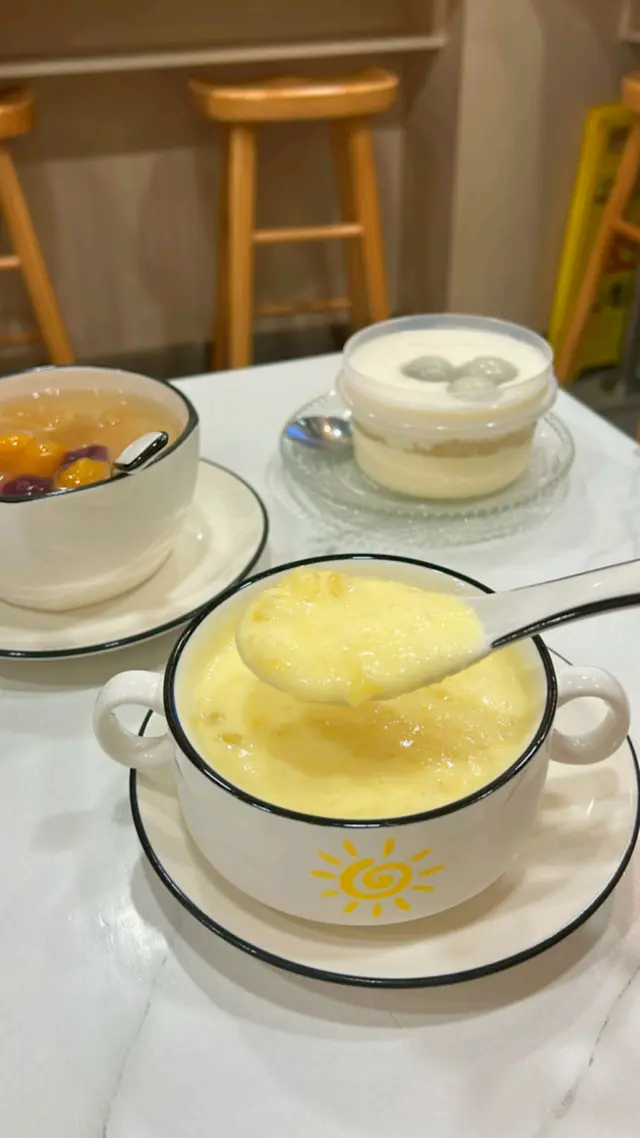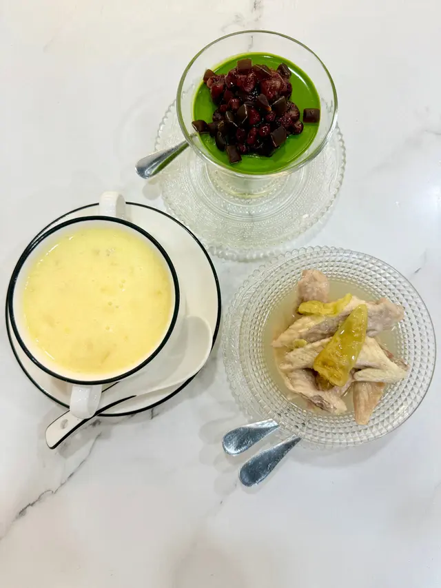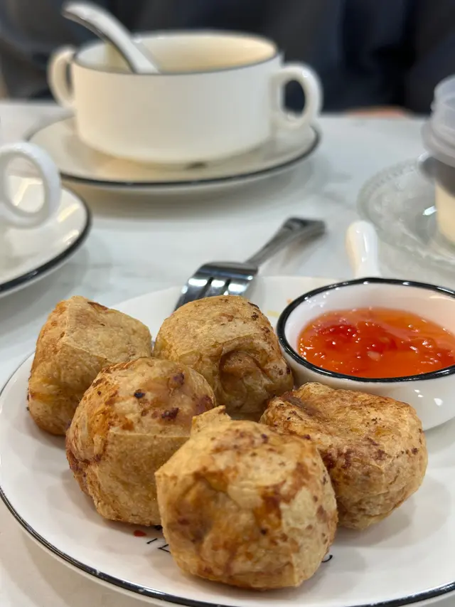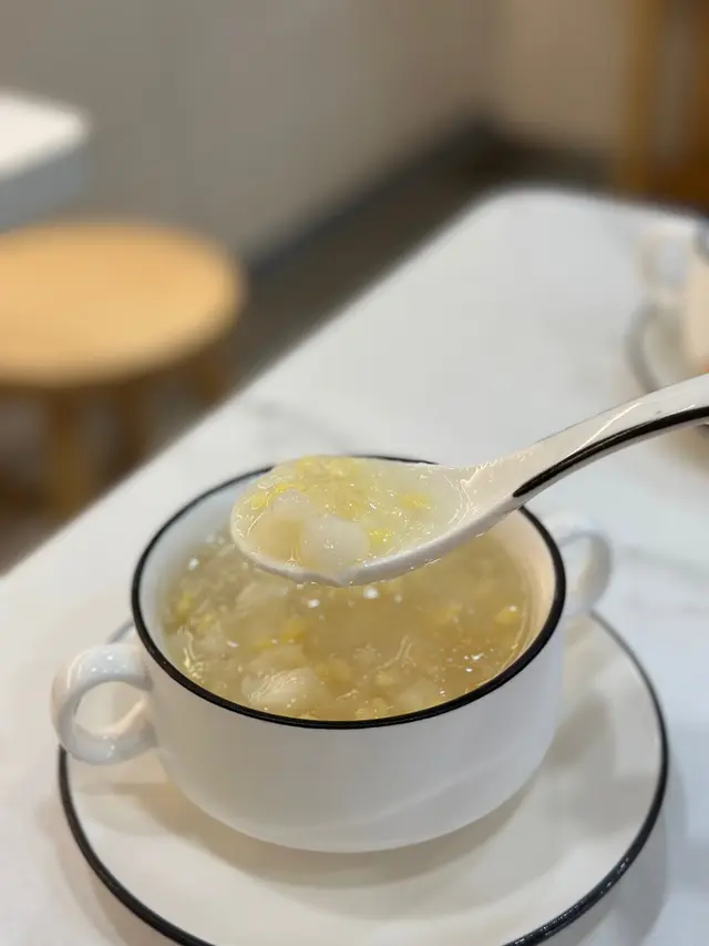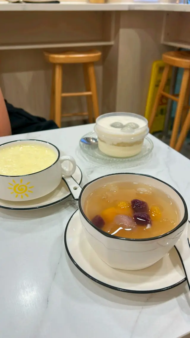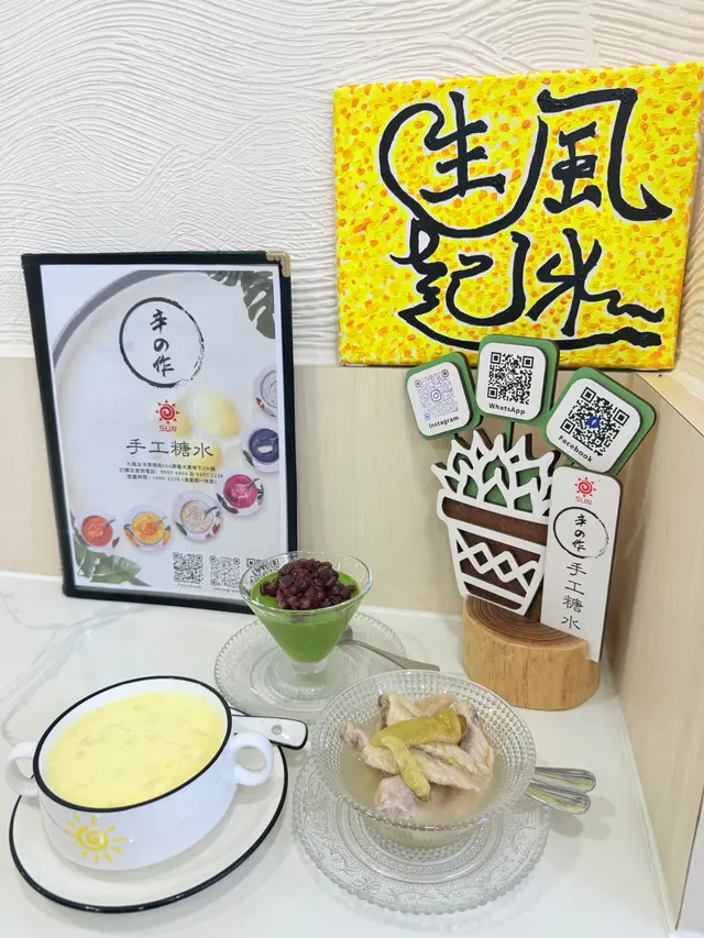 最近喺太子發現有一間唔錯嘅手工糖水舖, 真心推介!今次我哋叫咗三個糖水同一個小食, 全部都好有驚喜!蘆薈雪燕綠豆邊馬蹄爽 - 凍(HK$45)呢個糖水真心要讚!呢排天氣又焗又濕, 食依碗冰凍嘅馬蹄爽, 真係透心涼.材料好足, 馬蹄粒大粒又爽脆, 綠豆同雪燕份量都唔少.甜度啱啱好, 清新唔膩, 食完超滿足!新鮮海底椰椰汁雪燕桃膠露 - 凍(HK$48)呢款糖水椰汁味濃郁, 夏天食一樣好清涼.雖然冇馬蹄爽咁清新, 但有椰子肉同埋勁多桃膠, 口感豐富.超正!黑白配 - 自家製芝麻糊配蛋白燉3.6牛乳 (HK$40)呢款糖水完全係另一種體驗.味道會濃啲.芝麻糊食落好香, 入口順滑.蛋白燉牛乳口感似食緊布甸, 質感超滑溜.鍾意食芝麻糊同燉奶嘅朋友, 依個配搭真係必試!香脆豆卜釀豬肉 (HK$38/5粒)冇諗一間糖水舖嘅小食可以咁出色!一上枱已經聞到香味.每粒係一口size.豆腐外層脆脆地, 裡面釀滿豬肉餡.而且啲肉汁仲鎖住喺裡面.就算唔點泰式辣醬都已經好夠味, 好好食.呢個小食一定一定要嗌!下次再嚟太子,我會試吓其他甜品, 同埋再食香脆豆卜釀豬肉.…查看更多